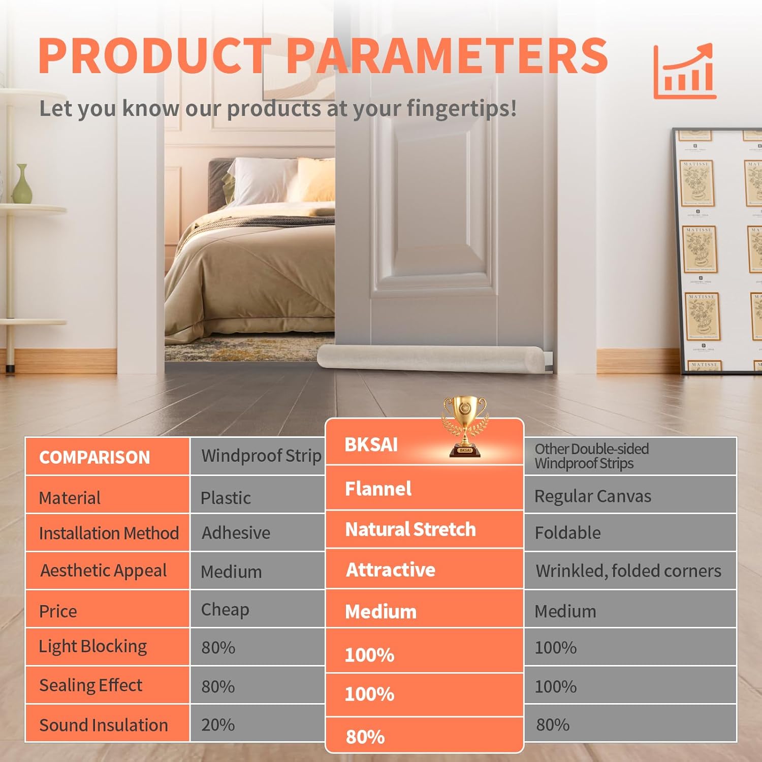 • 5-in-1 Under Door Draft Stopper for Ultimate Protection: Block light, cold drafts, heat loss, noise reduction, and 1nsect-proof door gap. maintain indoor temperature, silence, and pest-free comfort in all seasons.