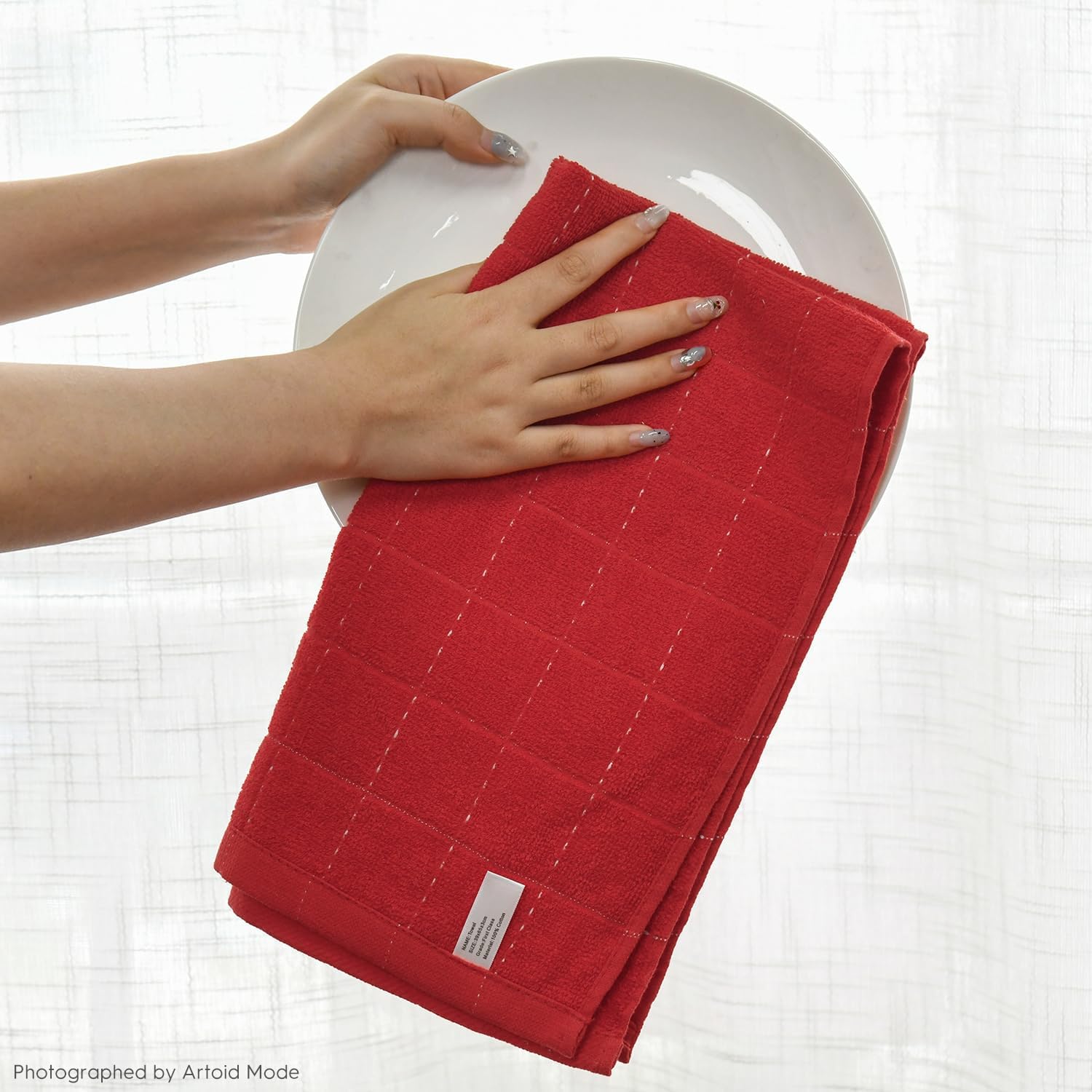Artoid Mode Checkered Designed Cotton Red Terry Kitchen Dish Towels, 15x25 Inch Soft Absorbent Quick Drying Family Cleaning Tea Towels Set of 4