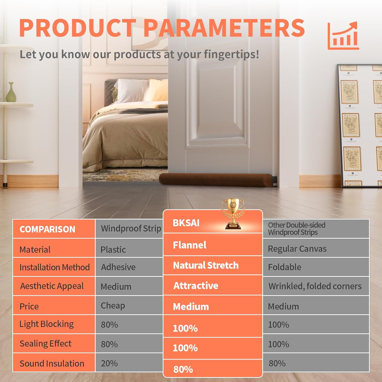 • Smooth Edge Draft Stopper vs. Competitors' Bulky Designs: Edge eliminates door stopper corners that snag doors—ensures smooth opening/closing every time.