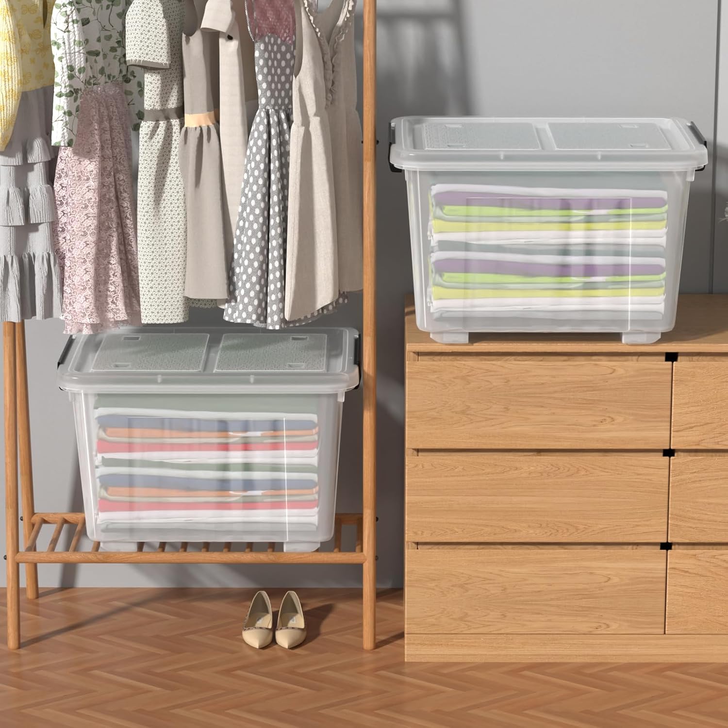 Zopnny 50 Quart 4 Pack Plastic Storage Container with Lid, Wheeled Clear Storage Latch Boxes
