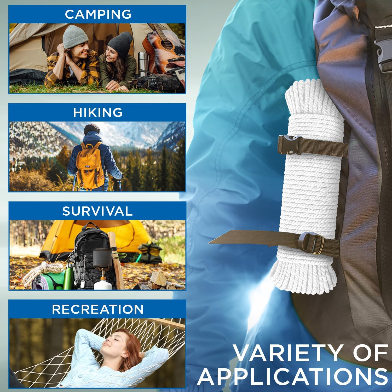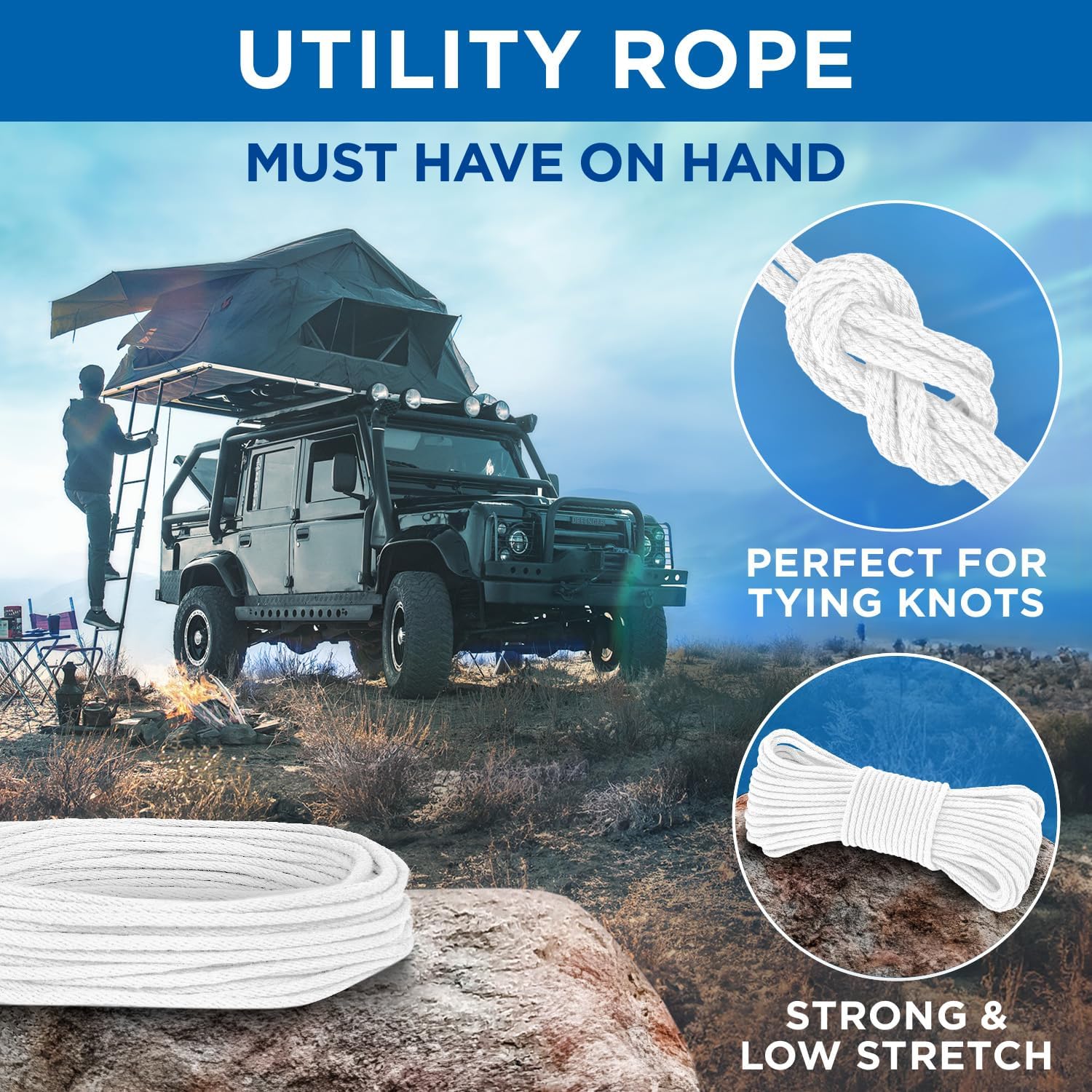 • MUST-HAVE: General Application Rope is widely used for tying down equipment, weaving hammocks, as window sash cord, clothes line cord, moving rope, laundry line, flagline rope, etc. The thin cotton rope is essential for every home. Always have it on hand in your car, garage, garden or home.