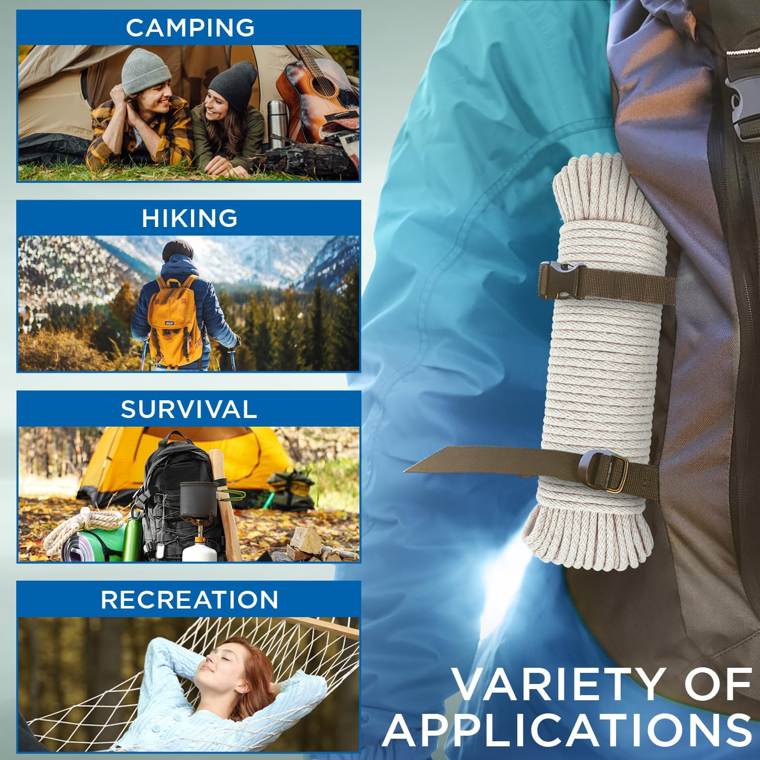 • MUST-HAVE: General Application Rope is widely used for tying down equipment, weaving hammocks, as window sash cord, clothes line cord, moving rope, laundry line, flagline rope, etc. The thin cotton rope is essential for every home. Always have it on hand in your car, garage, garden or home.