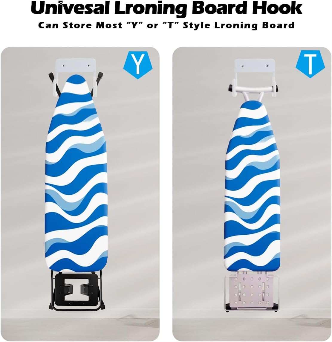 • 【Install in Minutes—No Sweat】Comes with all hardware included (Two different lengths of screws)—just grab a drill and mount it on doors or walls. Measuring 5 inches long (inner length: 4.1 inches), it’s a snug fit for most Y-shaped boards. Pro tip: Check your ironing board’s leg width before ordering!