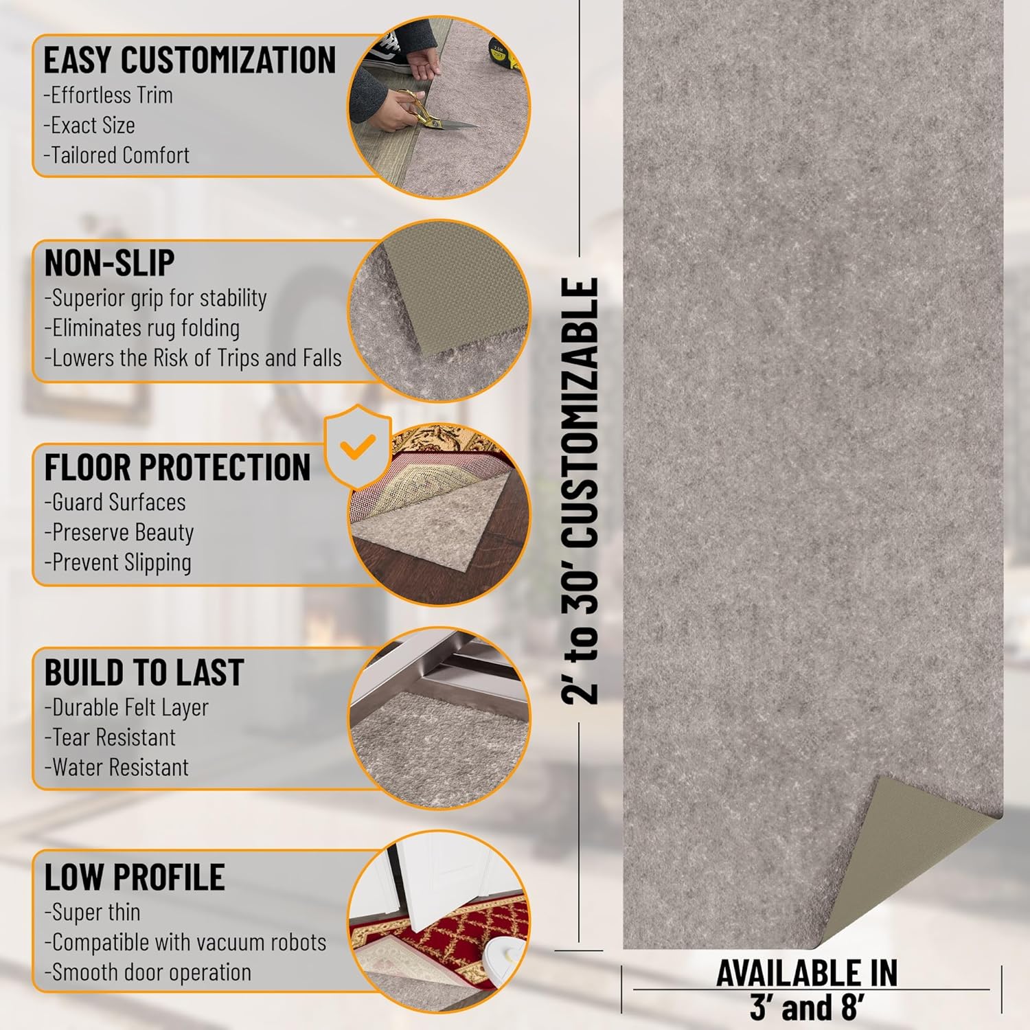 • [CUSTOM FIT FOR EVERY SPACE]: Easily cut to size with scissors to fit any rug or runner. Perfect for use throughout your home—from bedrooms and hallways to kitchens and offices.