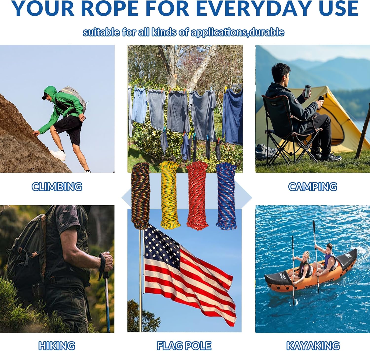 • 【Strong Performance】The diamond braid general purpose Rope has excellent handling characteristics. Composed of Nylon and Polypropylene mix which gives it good durability.