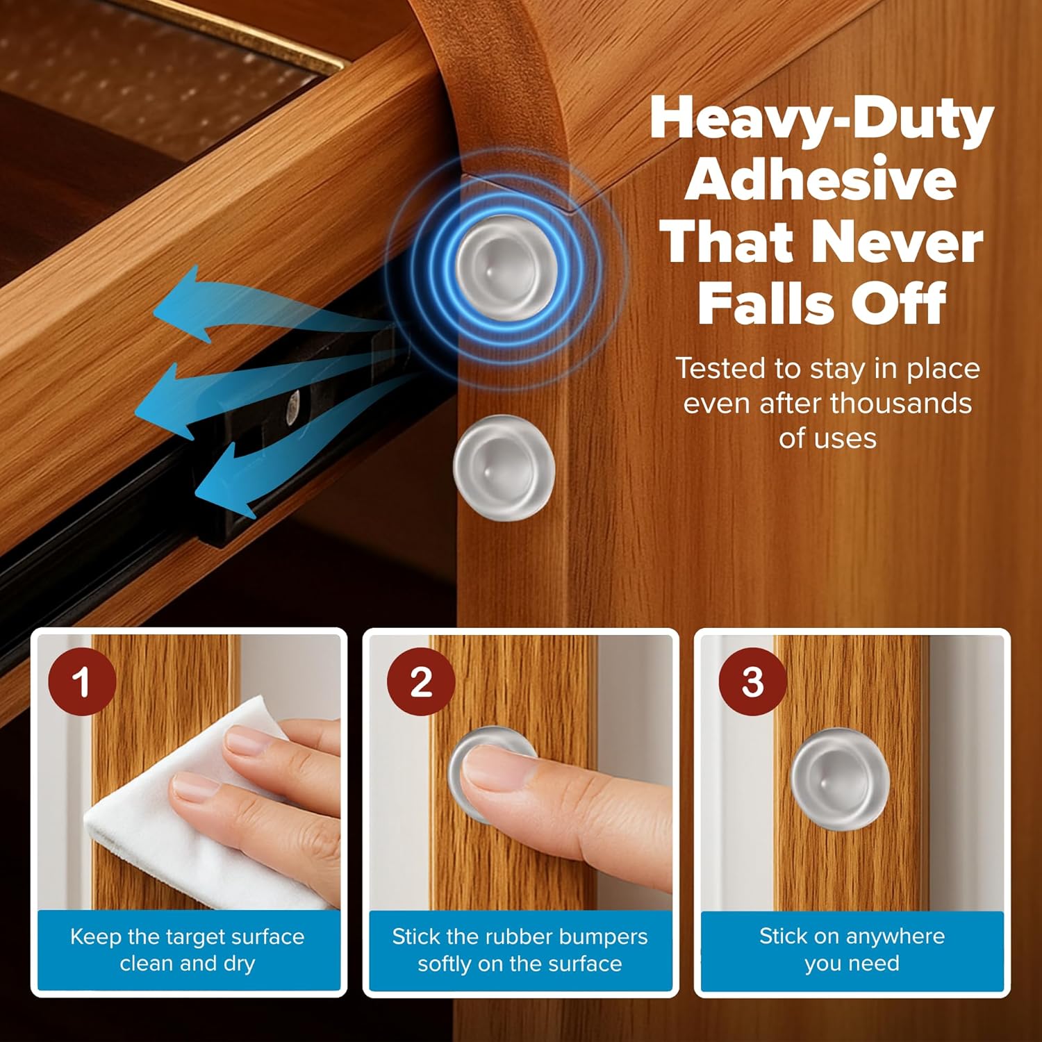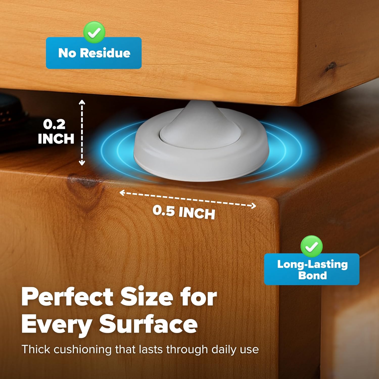 • COMPACT DESIGN: Extra small size makes these bumpers perfect for cabinet doors, drawers, and tight spaces while remaining effective.