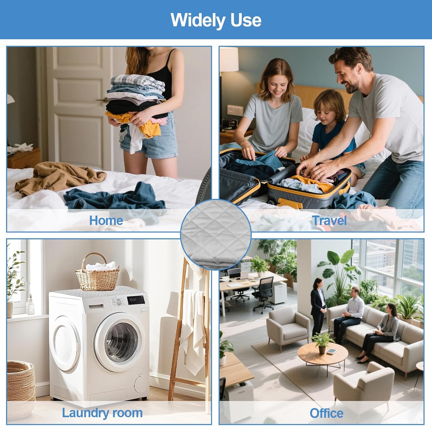• Portable and Space-Saving: Measuring 33.5 x 17.7 inches (85 x 45 cm), this ironing mat is designed for ultimate convenience. It can be easily rolled or folded, making it ideal for compact living spaces like apartments, dorms, RVs, and laundry rooms. It can also serve as a protective cover for your washing machine or dryer.
