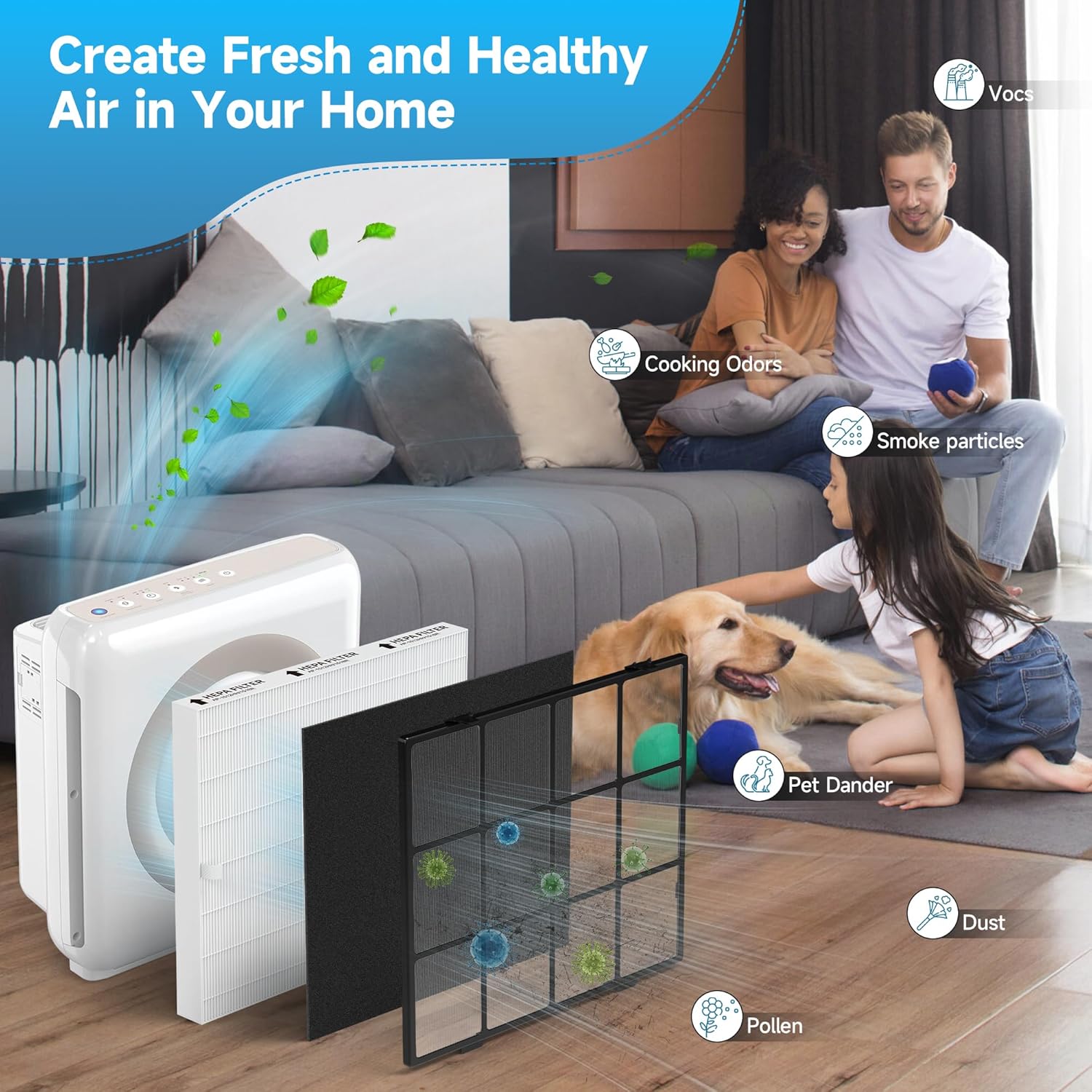 • Advanced Contaminant Removal​:Premium filtration (0.03-micron particles) + activated carbon adsorption for household odors (smoke, cooking, pets)