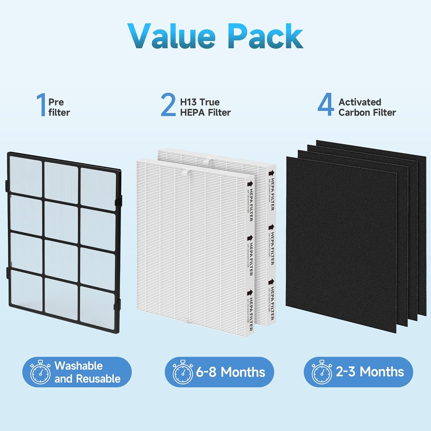 • Complete Maintenance Package​:1 washable fine mesh pre-filter+2 Premium filters (annual replacement) + 4 carbon filters (biannual renewal) ensuring uninterrupted air purification