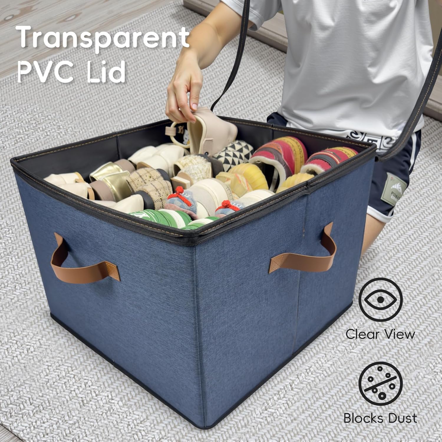 Shoe Organizer for Closet, 2 Pack Shoe Storage Bins with Clear Cover, Adjustable Dividers Fits 16-32 Pairs ShoeBoxes, Organizador de Zapatos, Navy Blue