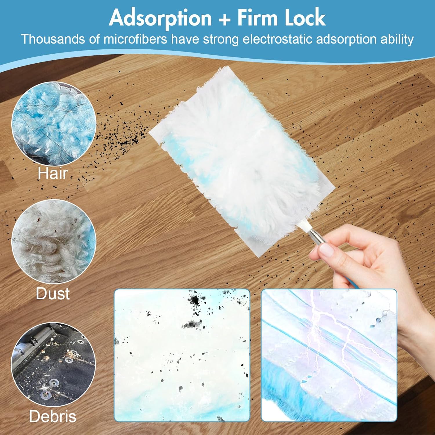 • 【4x Strong Electrostatic Adsorption】 Before using the for swiffer dusters refill, shake the microfiber feathers evenly. They are made up of thousands of soft, dense fibers, giving the fiber surface strong electrostatic attraction under a fluffy texture. Additionally, a special coating is applied to enhance the static electricity, enabling efficient adhesion and capture of fine dust, debris, pet hair, and other particles on various surfaces, securely locking them in place.