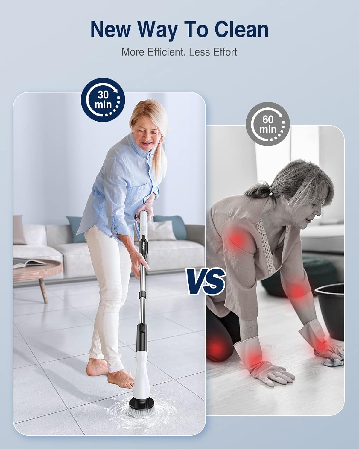 • Efficient Cleaning Companion: LABIGO Electric Spin Scrubber streamlines household cleaning, saving time and effort with its ergonomic design that eliminates the need for bending or kneeling. For tough stains, pre-soak in detergent for 5 mins before use