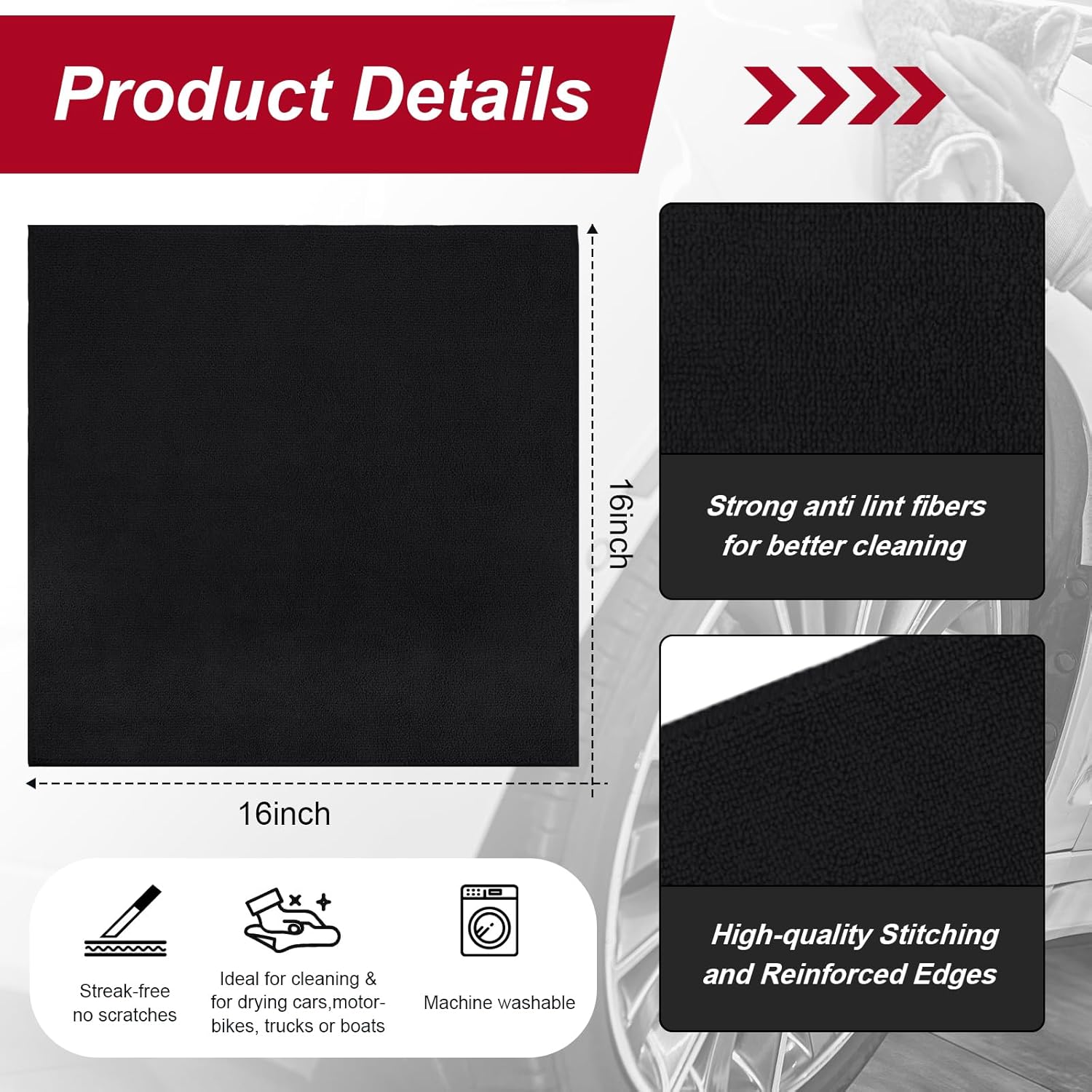 • Value Pack and Convenient Size: 200 pieces of microfiber car towels, packed in a large quantity, enough towels to meet your daily use and replacement needs; Each cloth measures approximately 16 x 16 inches, a good size to provide ample cleaning surface area