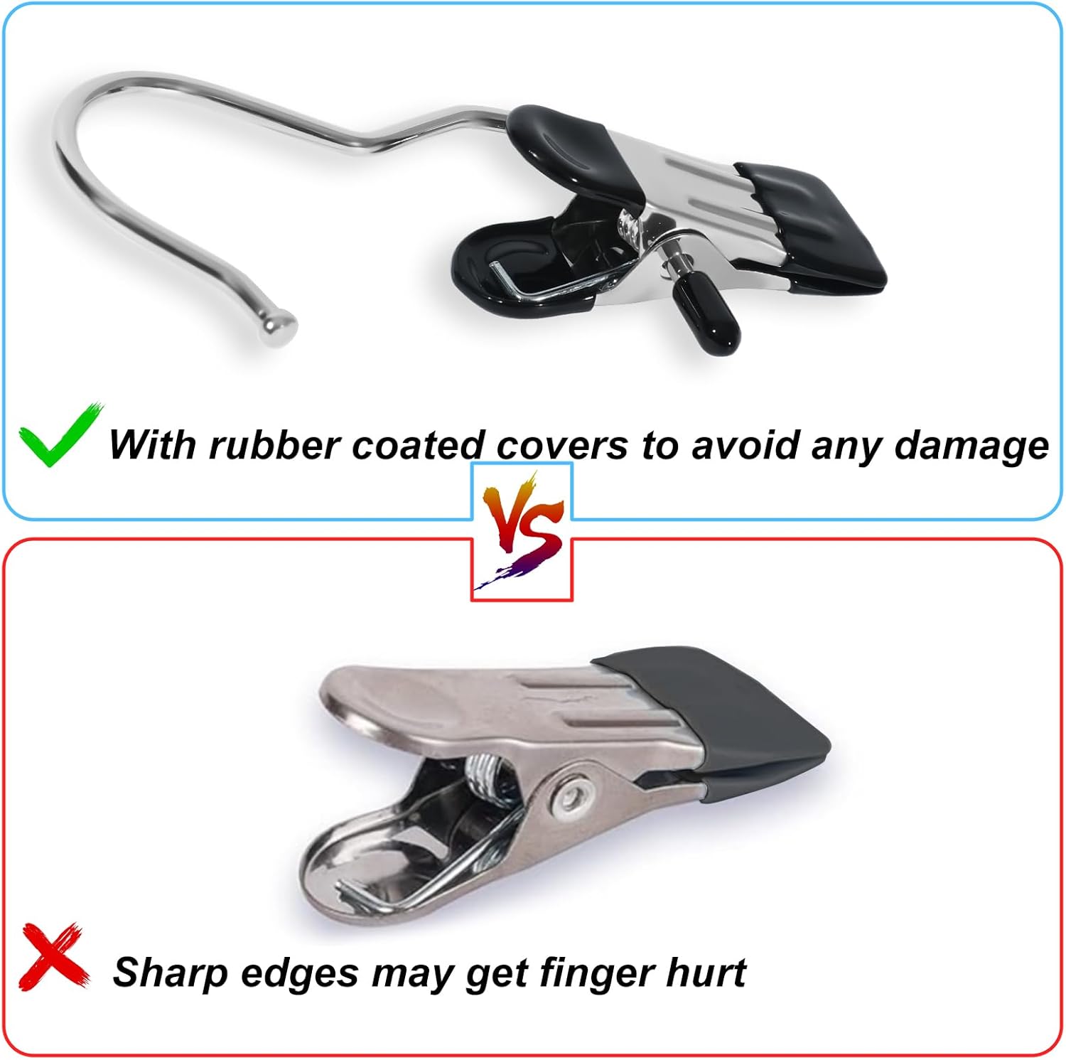 • 【Upgrade Double Head Clamp Dipped】Upgrade Double head clamp non-slip soft rubber material, not only protect your hands, leave non-trace clamp, protect clothing and non-slip not drop! Not easy to rust, will not fade! All metal material bearing capacity is good, Strong bite force, firm grip, not easy to fall