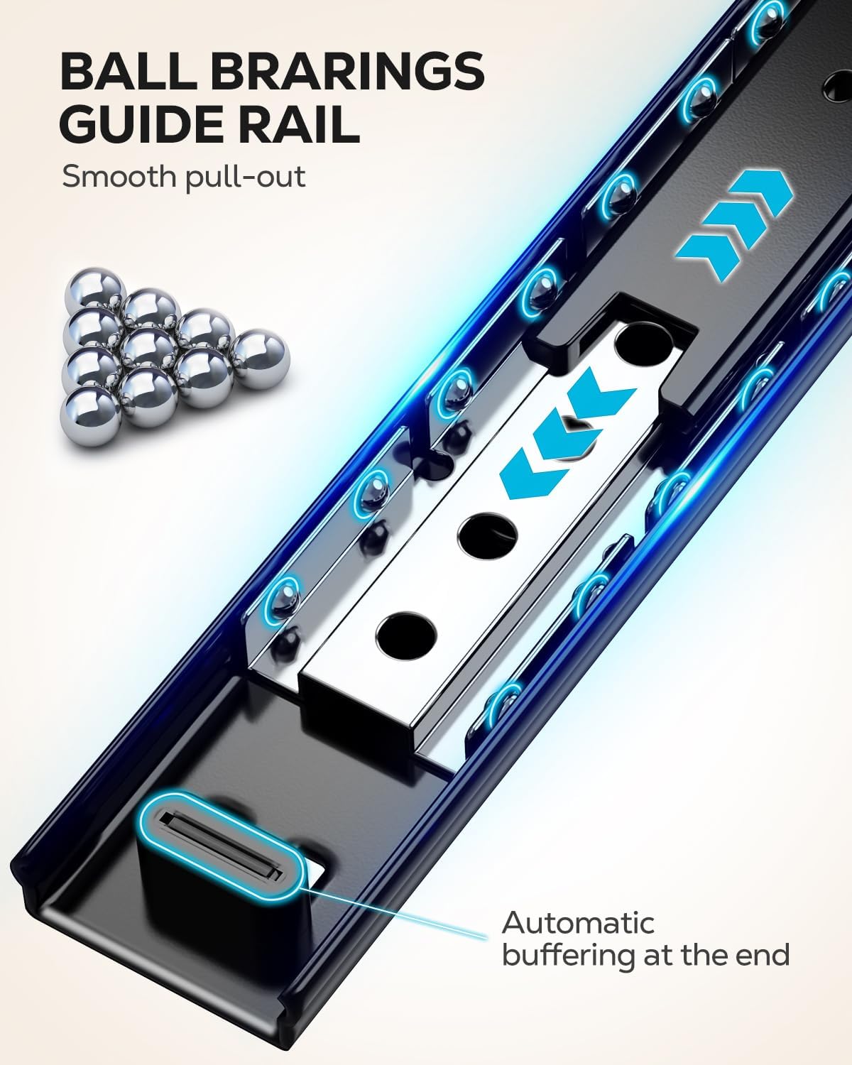• BALL BRARINGS GUIDE RAIL--Smooth pull-out, automatic buffering at the end.