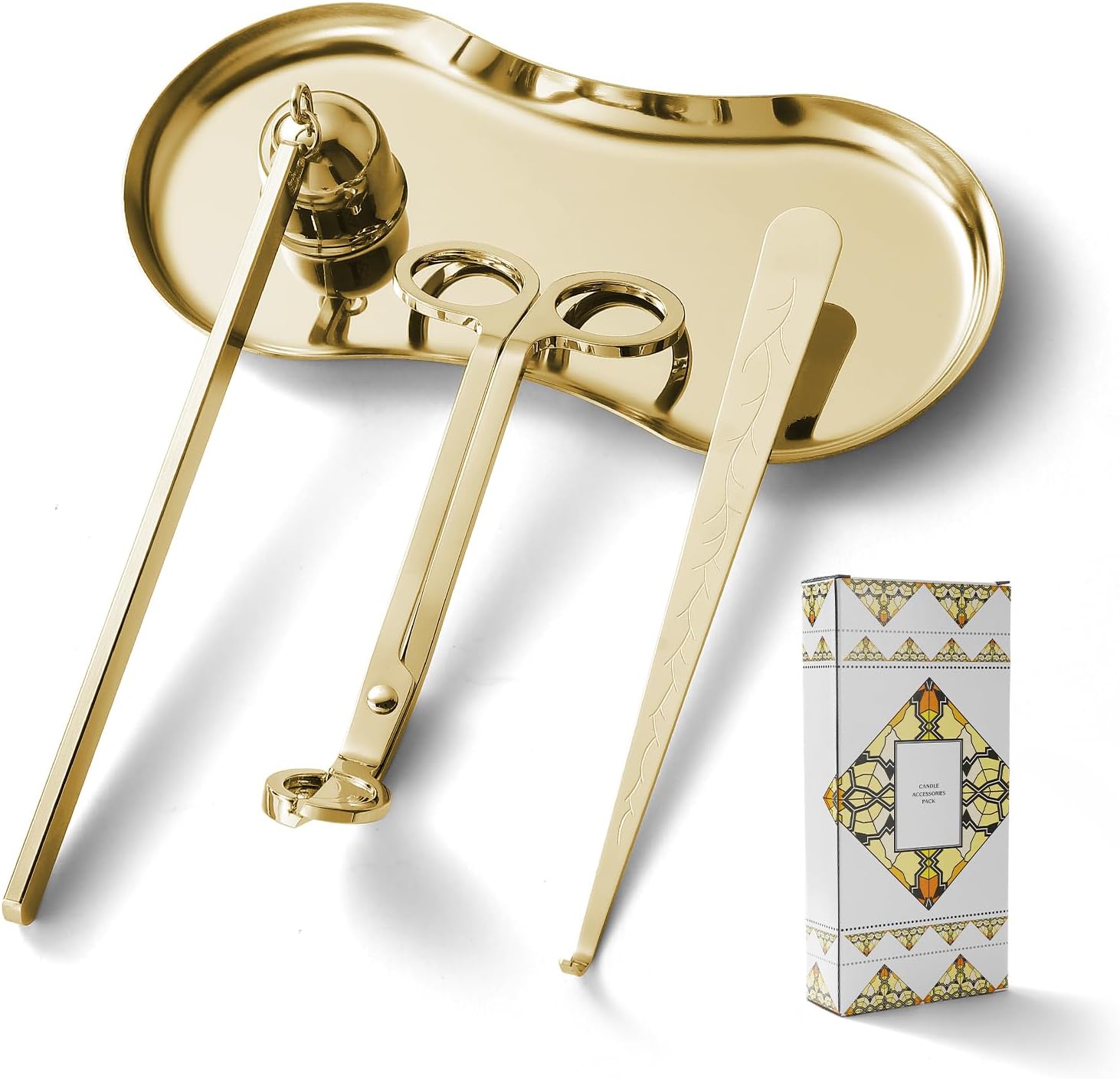 • Professional 4-in-1 Candle Care Kit: Your essential set includes a Candle Snuffer, Candle Wick Trimmer, Candle Wick Dipper,and Tray Plate. Perfectly sized tools ensure effortless, smoke-free extinguishing, clean wick trimming, and precise wick positioning for safer, cleaner candle burning and extended candle life. Comes in a stylish gift package.