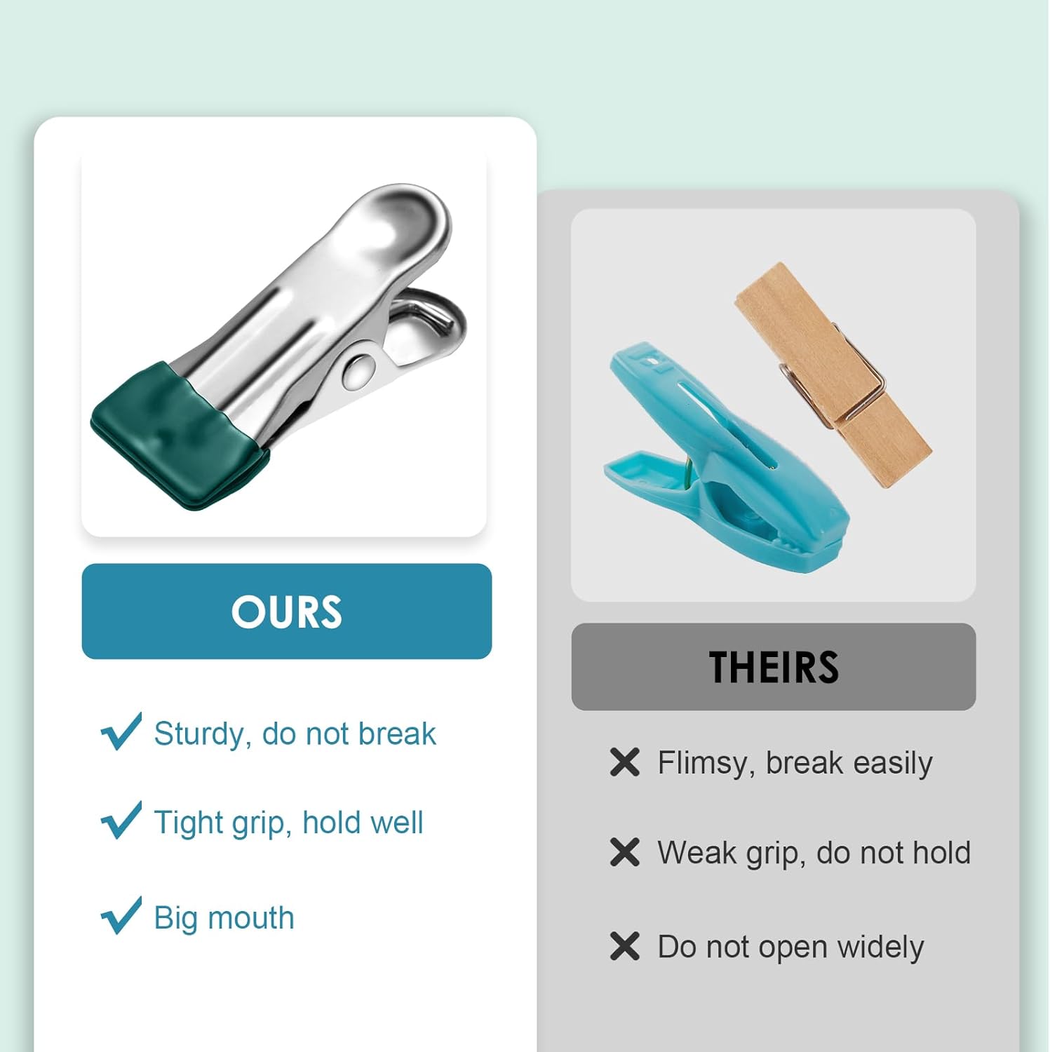 • Versatile & Multipurpose: These clips are not just for clothes! Use them as photo clips, chip bag clips, snack holders, or even office paper organizers. Perfect for the laundry room, kitchen, office, or while traveling, offering versatility for various daily tasks.