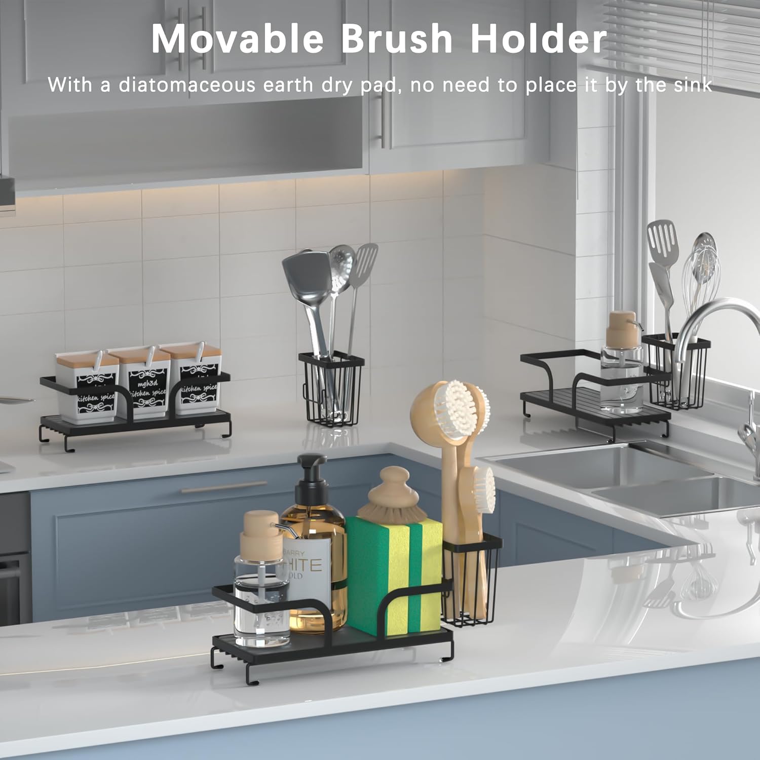 Sponge Holder for Kitchen Sink,Sink Caddy Organizers with Stone Drying Tray, Kitchen Sink Organizer for Sponges, Soap, 9.7" x 4.2"x 3.2" Home Decor Storage and Organization,1PCS Black