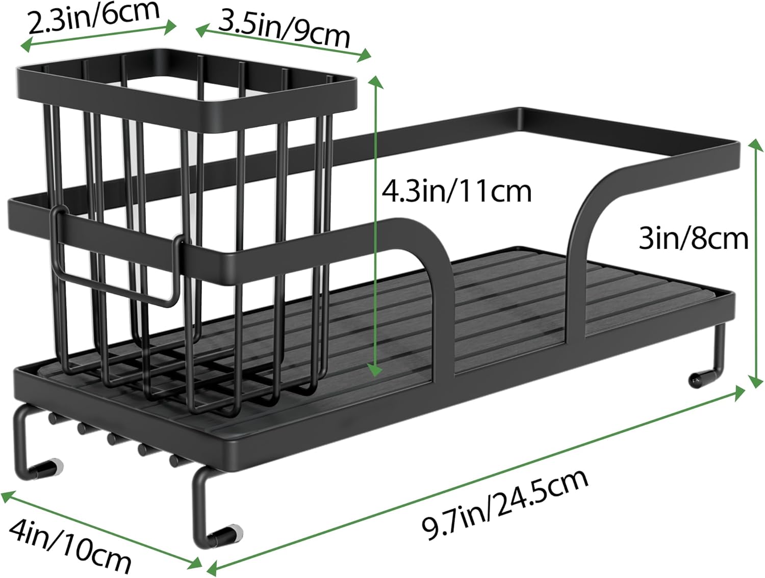 • Large Storage Capacity: Our kitchen sink caddy measures 9.7" x 4.2"x 3.2" and can hold cleaning bottles, sponges, dishwashing brushes, long handled brushes, and more