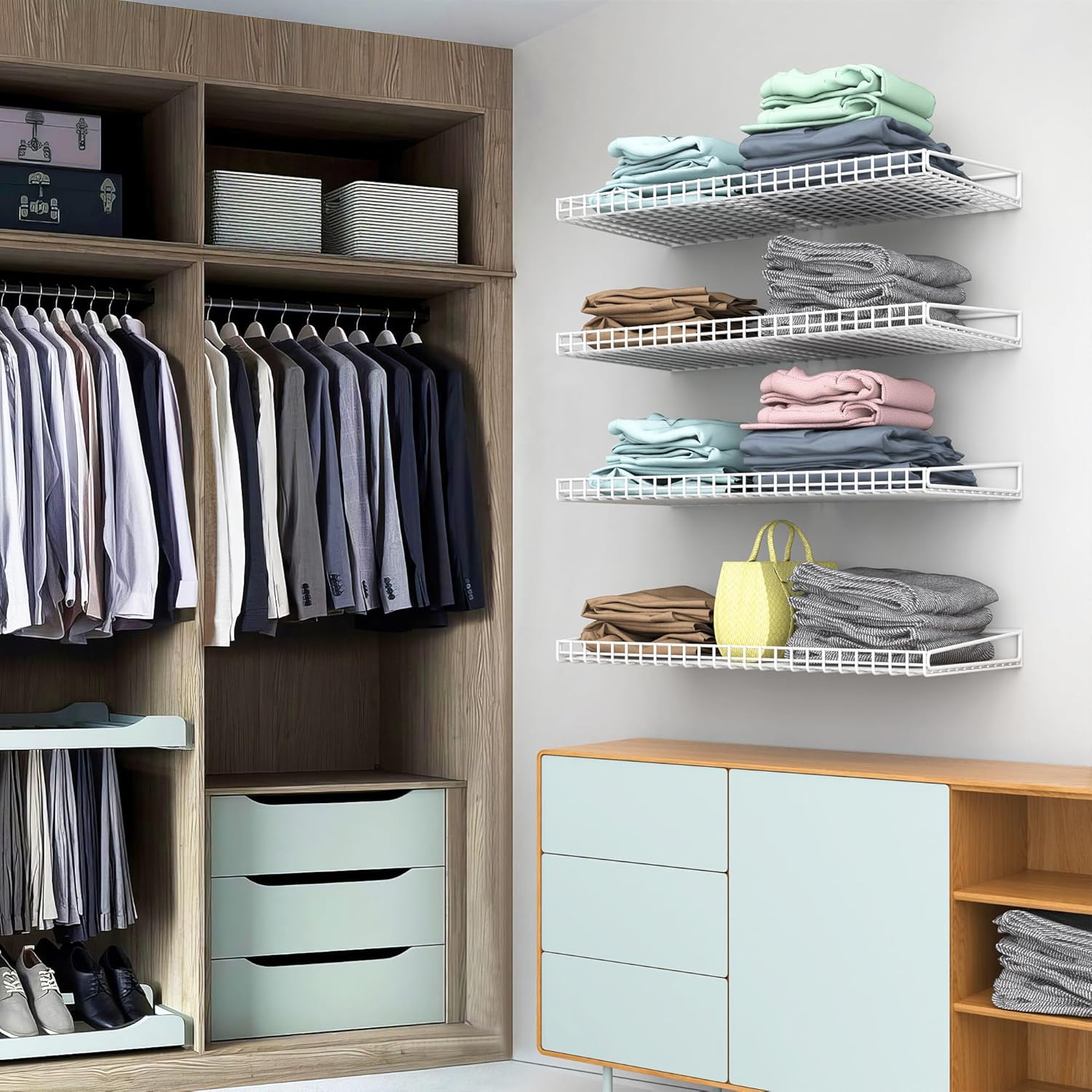 Ultrawall Wall Mounted Storage Shelf for Garage, 4 Pack Metal Shelf Rack, Heavy-Duty Wall Organizer Shelves Suitable for Shop, Shed, Garage 23.5inch x 12inch(White)