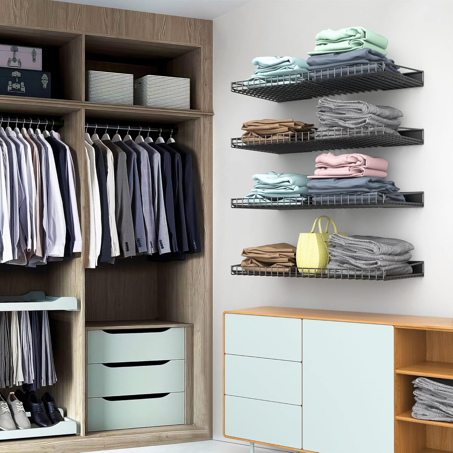 • Space Optimization: Maximize your garage space with these sturdy wall shelves, offering an efficient storage solution. Organize tools, equipment, and more, freeing up valuable floor space for your vehicles or other activities
