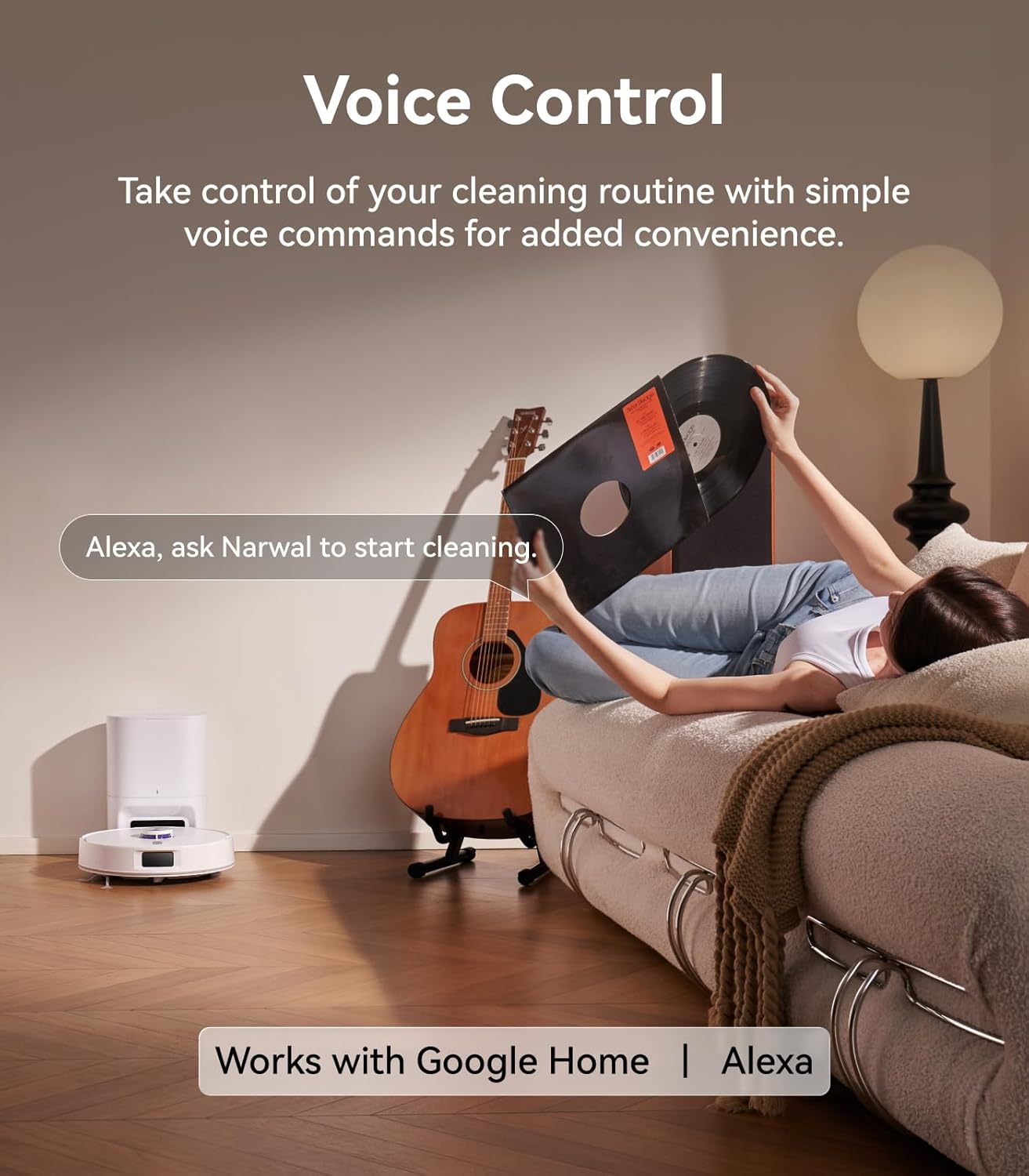 • Smart App & Voice Control: Control robotic vacuums Freo S anytime, anywhere via the Narwal app—adjust suction or mopping levels, set no-go zones, schedule cleanings, and more. Compatible with Alexa and Google Assistant for convenient voice control.