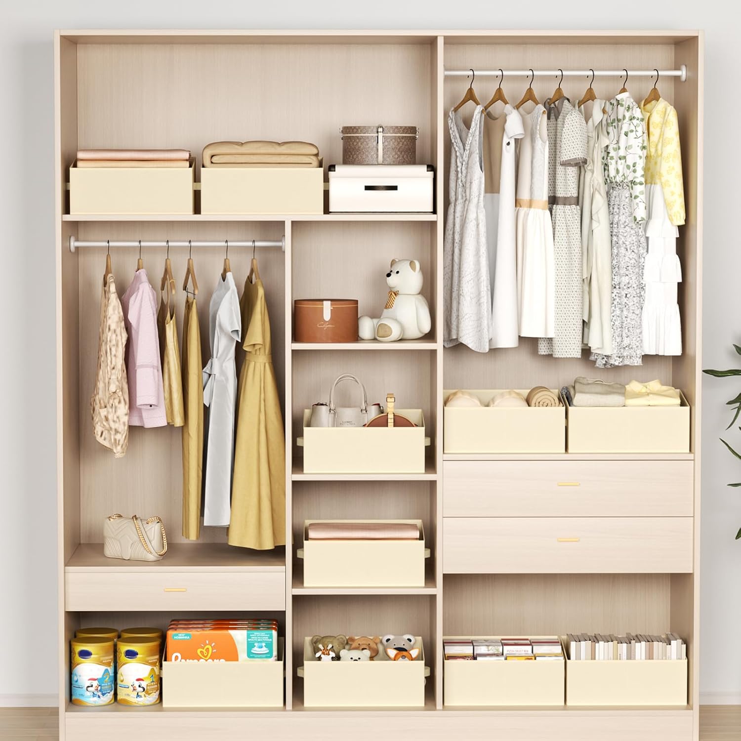 DIMJ Large Closet Storage Bins 8 Pack - Fabric Trapezoid Closet Organizer Bin, Foldable Storage Baskets for Shelves, Closet Shelf Organizer, Clothing Storage Box for Toys, Books, Towel, Clothes, Beige
