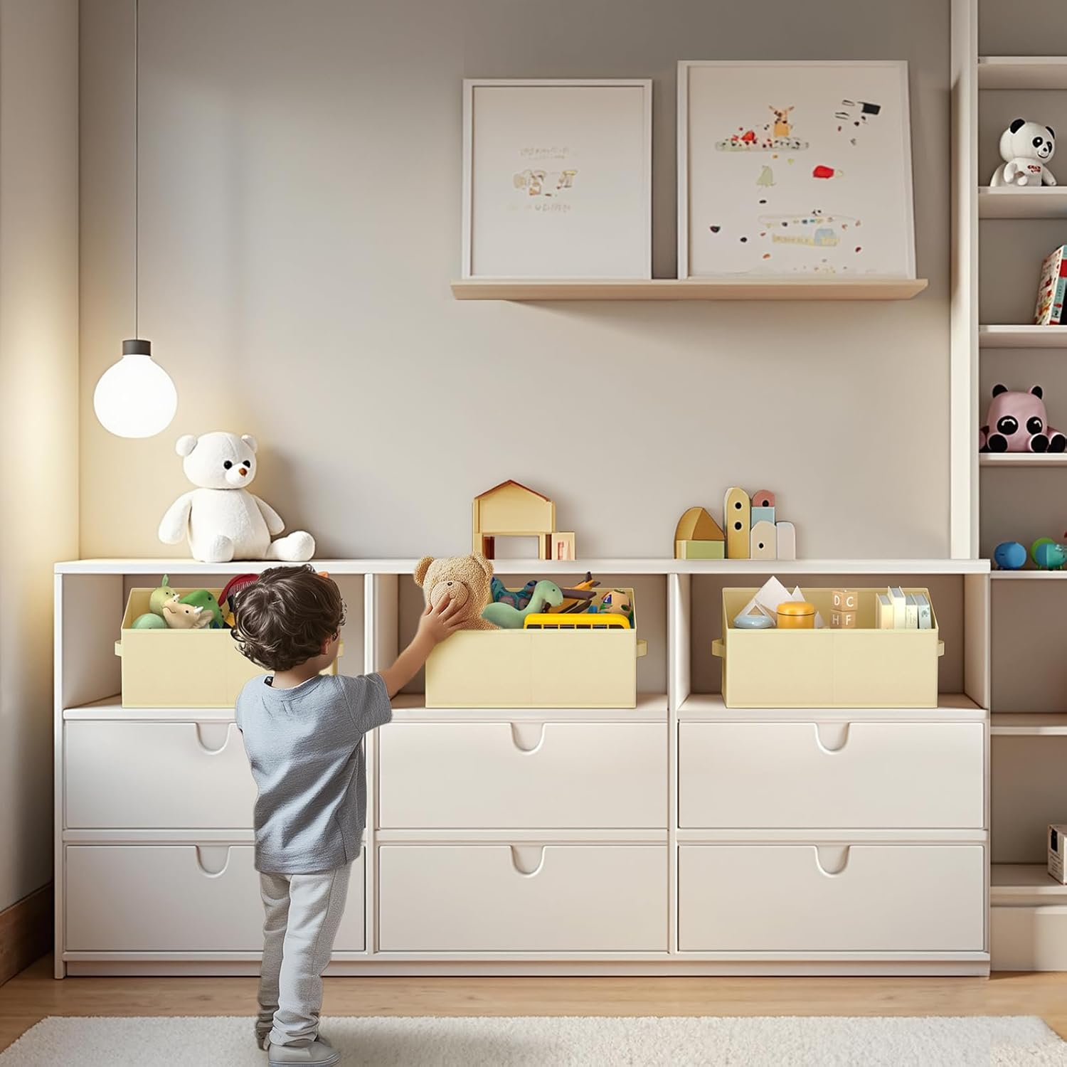 • 【Trapezoidal Design】These storage cubes are Trapezoid design that makes finding things convenient, also allows easy access when putting on the highest shelf. These are ideal closet bins for clothes, bags, shoes, towels, blankets, toys, dolls, and more