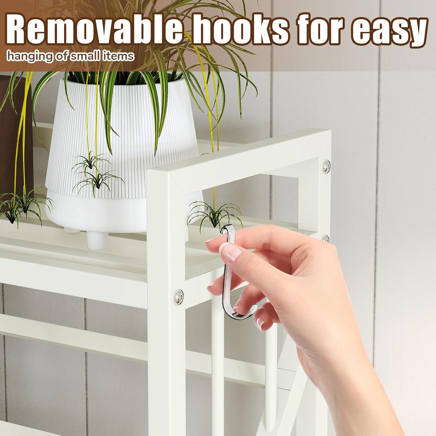 • Lots of space: our rolling book cart have 5 layers, you can store many books, and the top layer can also put potted plants or some small decorations, you can collect all of them and put them in order. And we also send 4 small hooks, you can hang bags and other items next to the bookshelf