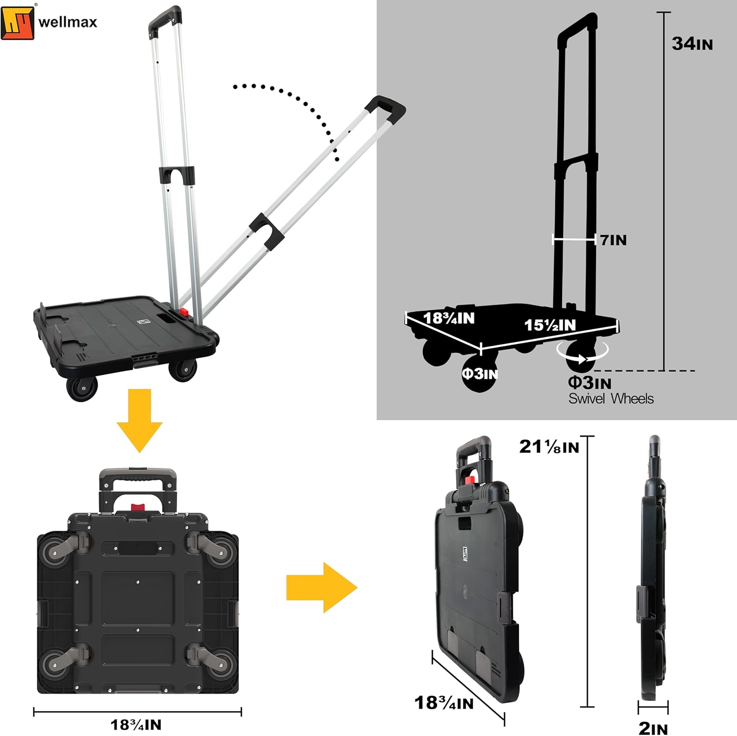 • Versatile 3-in-1 Design: Experience ultimate convenience with our patented Wellmax rolling crate, transforming effortlessly from a platform cart, to a spacious shopping cart, or a stackable storage crate. Ideal collapsible utility cart for groceries, office supplies, and classroom essentials.