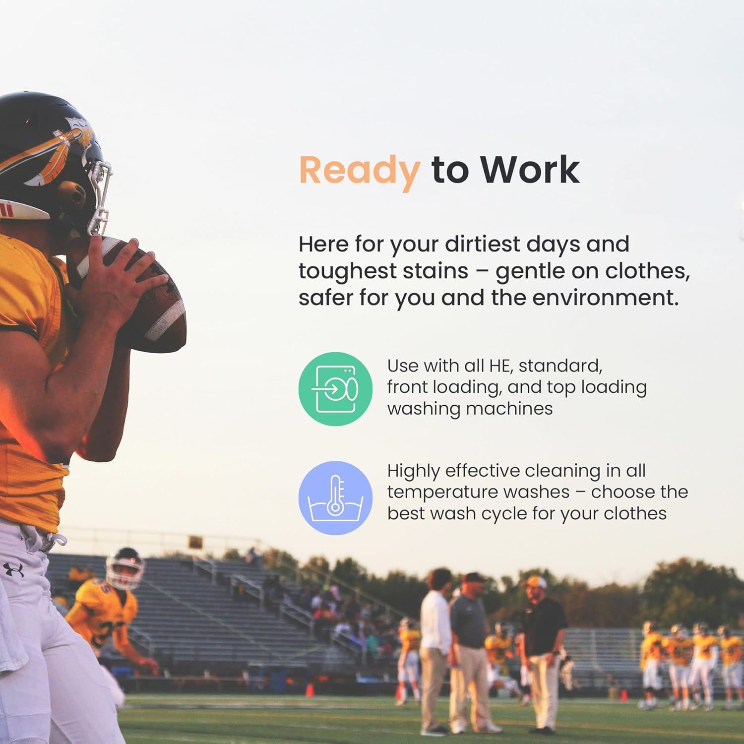 • OUTPERFORMED both conventional and eco detergents in lab testing. Proven stain-fighting power with clean ingredients and zero harsh chemicals.
