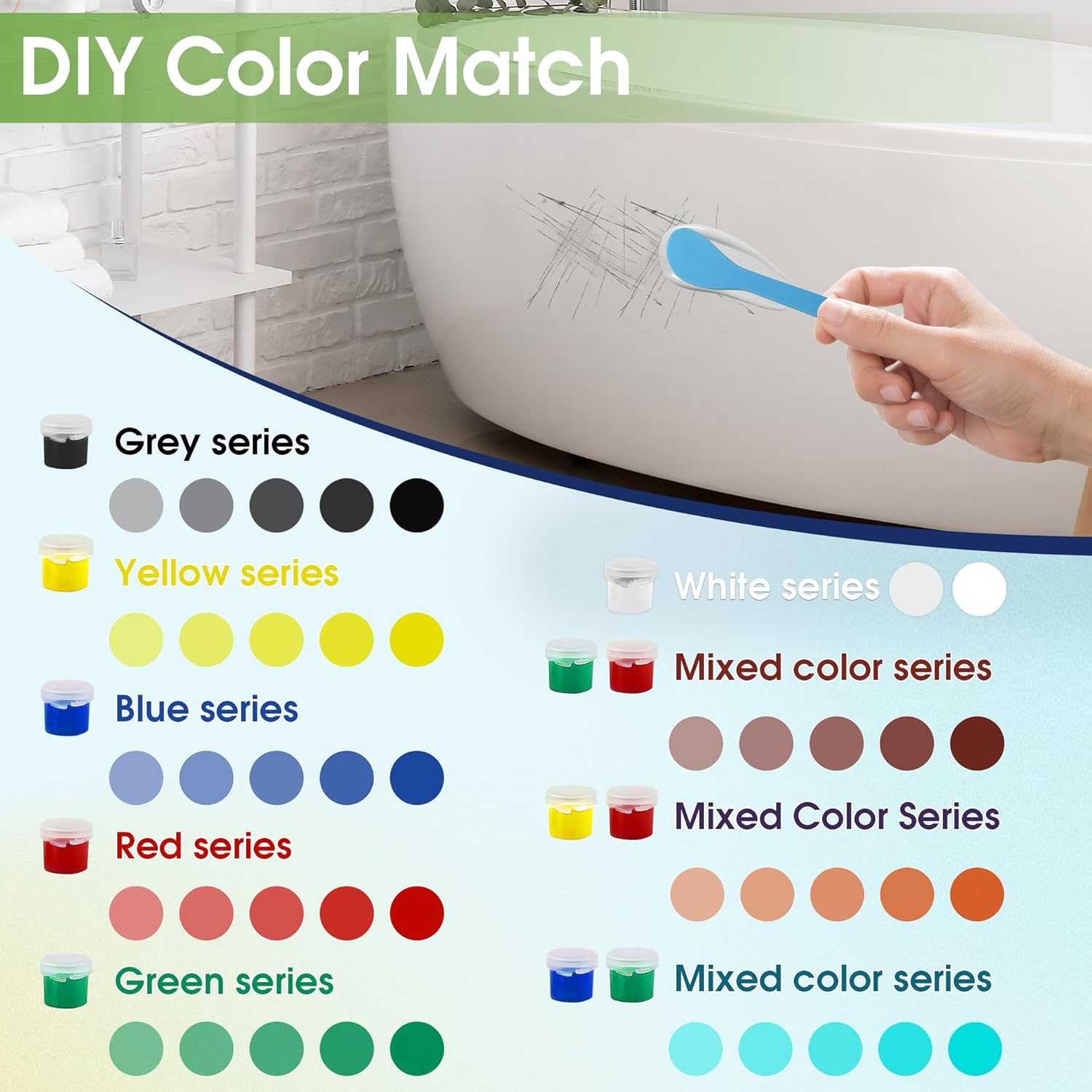 • Efficient & Easy to Use: Our kit includes white base color and 6 color pastes (red, yellow, blue, green, black, white), saving time on color matching and improving repair efficiency; Simply use the push rod to squeeze out the mixture evenly, ensuring precise mixing ratios for optimal repair results while simplifying the process for beginners
