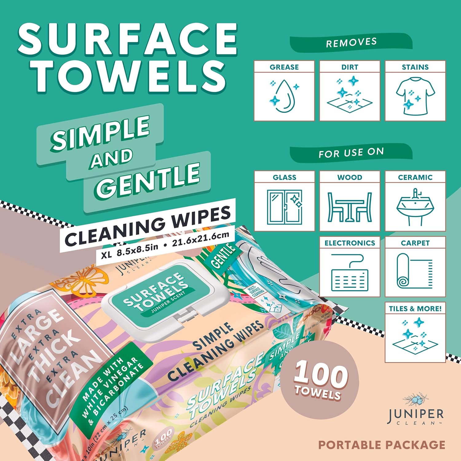 • 【EFFECTIVE MULTI-SURFACE CLEANING】Juniper Clean multi-purpose wipes are tough on grease, grime, and everyday messes. Use them confidently on hard surfaces such as countertops, wood, stainless steel, granite, appliances, phones, and more. Whether you're handling light cleanups or tougher tasks, these wipes are your go-to for a clean home.