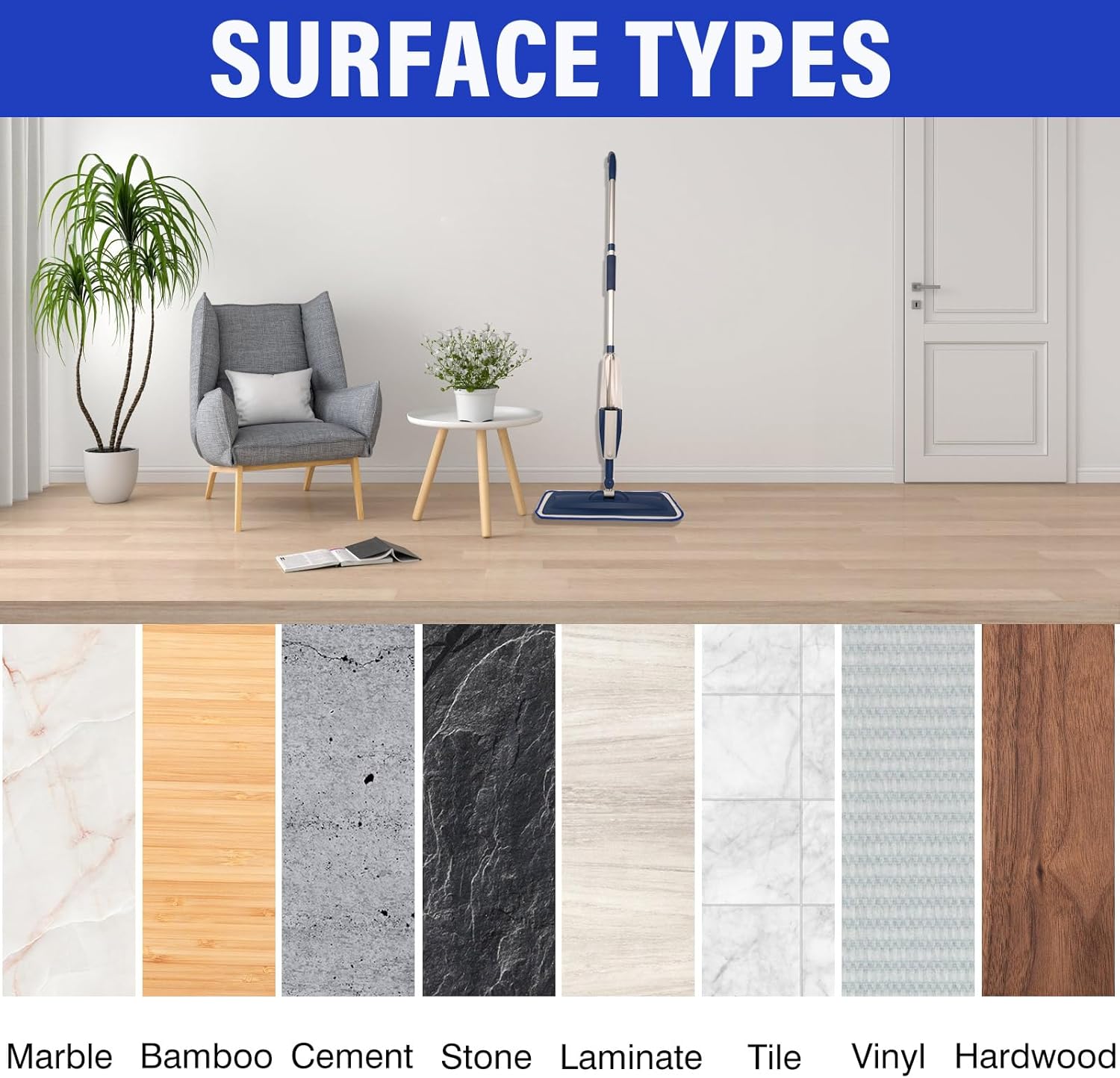 • Washable and Reusable-The back pad can be connected with the mop head by hook, which is convenient for disassembly.The mop pad can be washed over and over again, machine washable, hand washable, and then reused. Never use bleach.