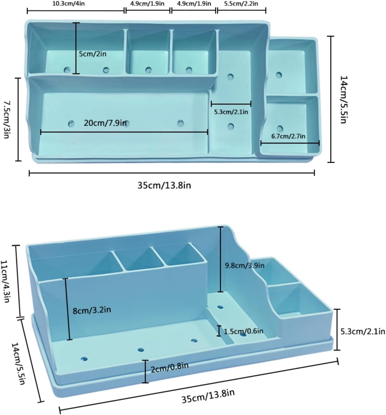 • LARGE CAPACITY TOOTHBRUSH HOLDER: Countertop bathroom vanity is designed with 2 rows of 7 slots, suitable for large space. Split level divider design, you can place bathroom supplies, electric toothbrushes, bamboo toothbrushes, toothpaste, makeup, makeup remover, spray, razor, makeup remover, makeup remover cotton pads, cotton swabs, cleanser, and other bathroom accessories individually. Keep your bathroom tidy and say goodbye to clutter.