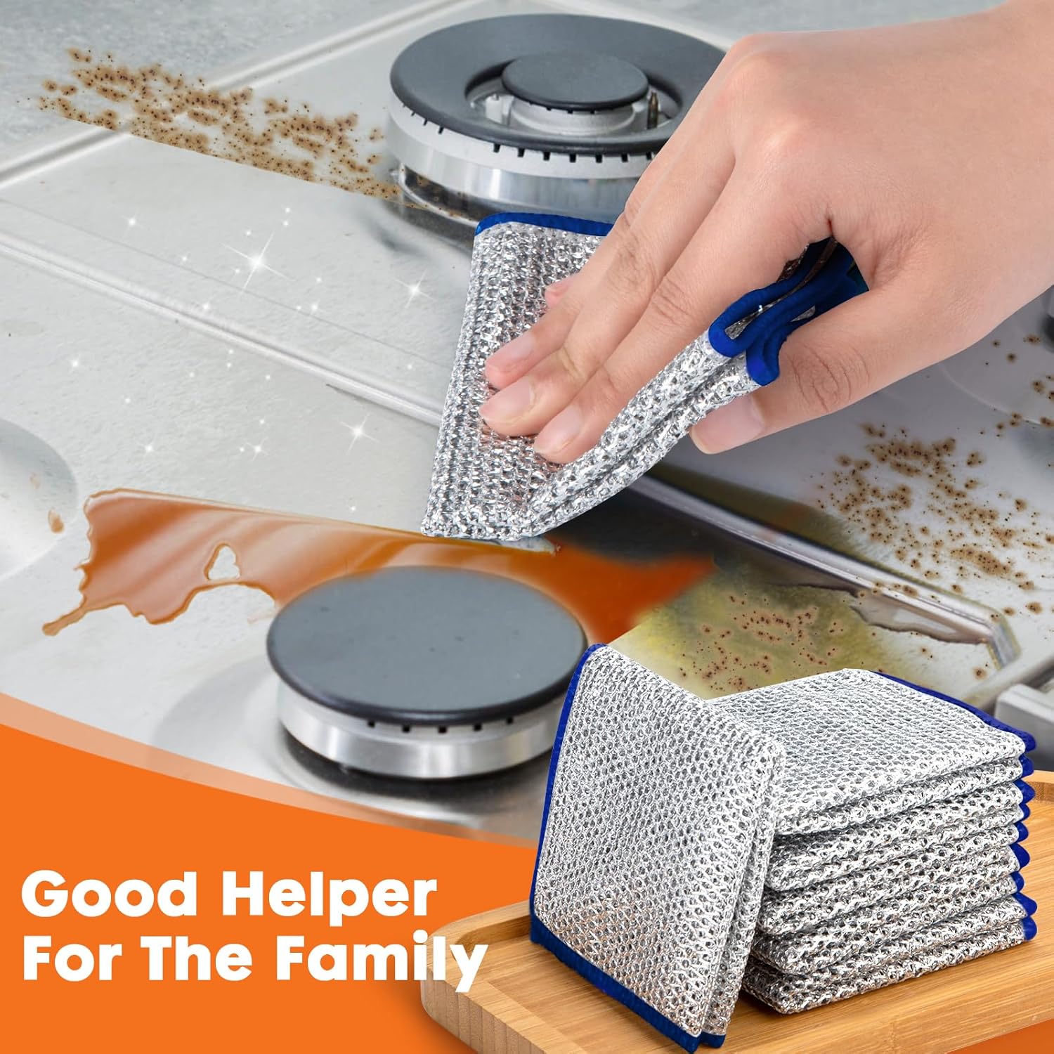 • SCRATCH-FREE: Wire dishwashing rag is made of high-quality materials to deeply clean surface dirt.It's not like Steel Wool Scrubbers, Dish rags for washing dishes also ensures that they do not scratch or damage the surface of non-stick cookware and other kitchen utensils, allowing you to clean with confidence.
