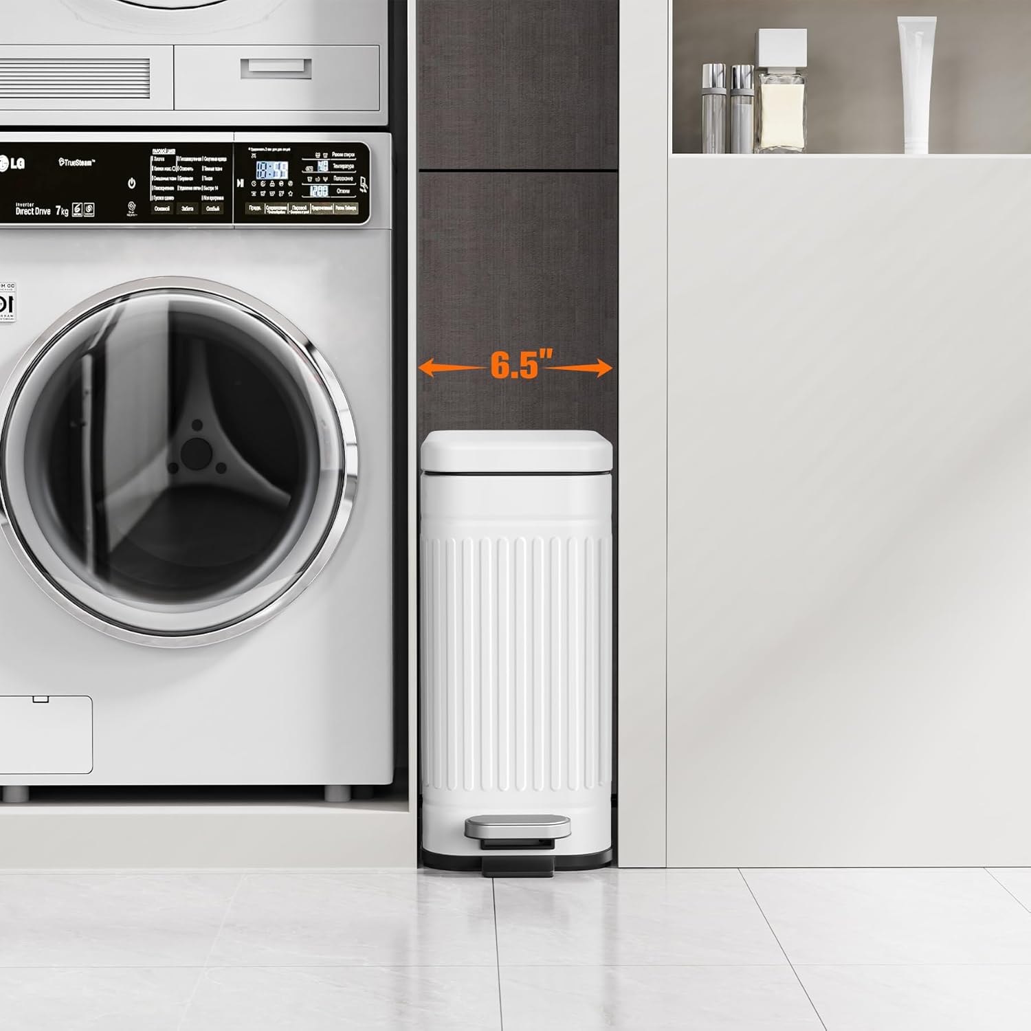 TrashAid Bathroom Trash Can with Lid, 2.6 Gallon Small Garbage Can Soft Close, Stainless Steel Step Waste Basket for Bathroom, Bedroom, Home Office, Laundry Room, Toilet, RV, White, 10 Liter