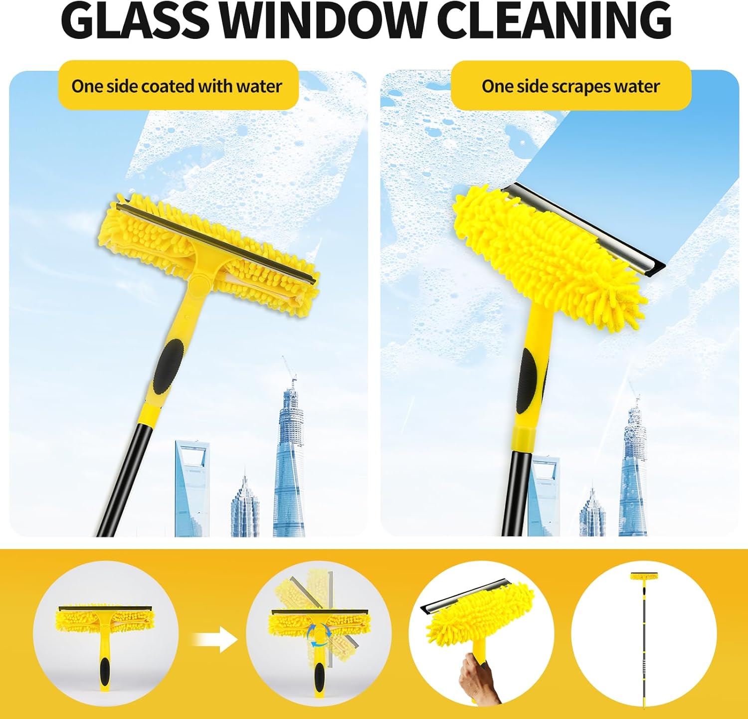 • 【Window glass cleaning wiper】With the glass cleaner, one side scraping and one side wiping, window glass cleaning more easily