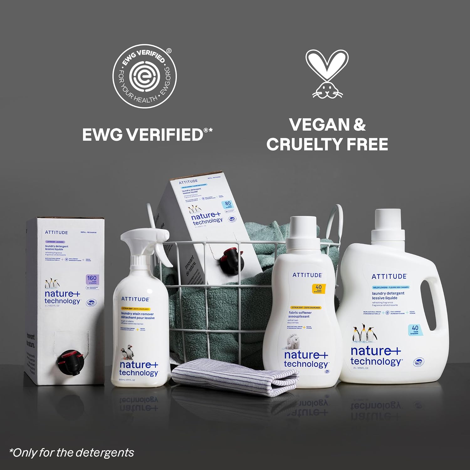 ATTITUDE Liquid Fabric Softener, Plant-Based & Vegan, HE Compatible, Naturally Derived, Lavender Scent, 80 Loads, 67.6 Fl Oz