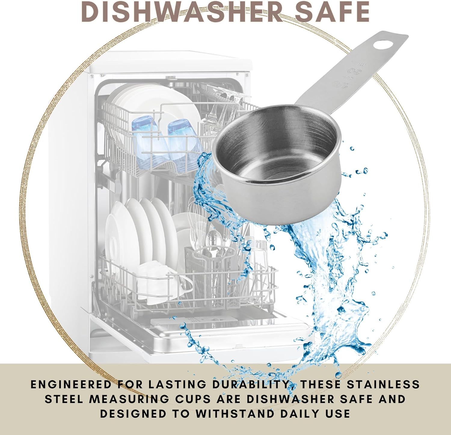• CLEAR ENGRAVED MEASUREMENTS: Deeply etched markings in both imperial (1/8 cup) and metric (30 ml) units stay legible even after repeated dishwasher cycles—no fading or rubbing off.