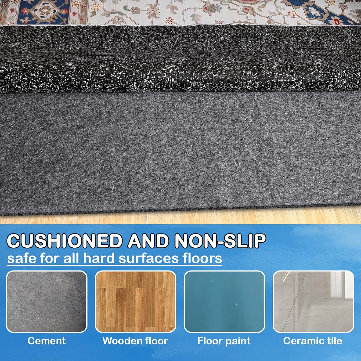 Non-Slip Rug Pads 1/4” Thick, 2x10Ft Waterproof Rugs Non Skid Rug Pad for All Floors and Finishes Durable Hardwood Floor Protective Felt Keeps Rugs in Place, Safe and Secure