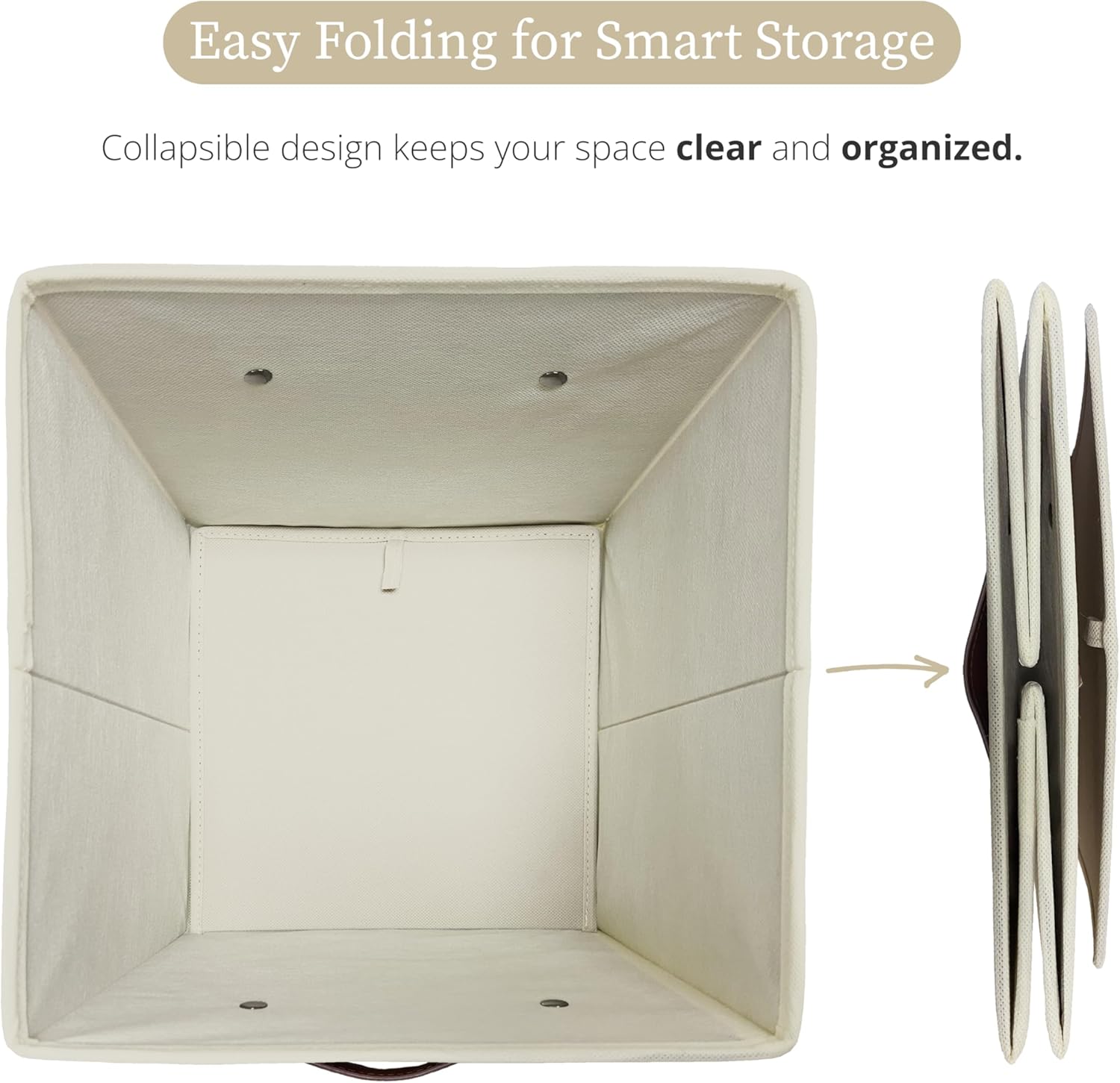 DECOMOMO Storage Bins, Cube Storage Bin with Labels, Fabric Storage Cubes for Shelves (10.5" x 11" / 2pcs, Beige)