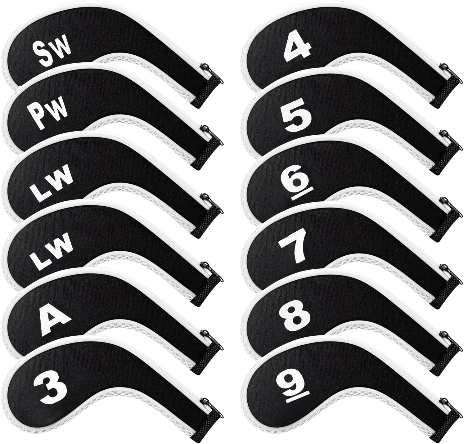 • 🏌‍♂【Package Content】Golf ball iron head cover. Fits all brands title list, Callaway, Ping, TaylorMade, Cobra etc. Please make sure your clubs are the right size before purchase.12pcs/set, including 3,4,5,6,7,8,9,A,PW,SW,LW,LW.
