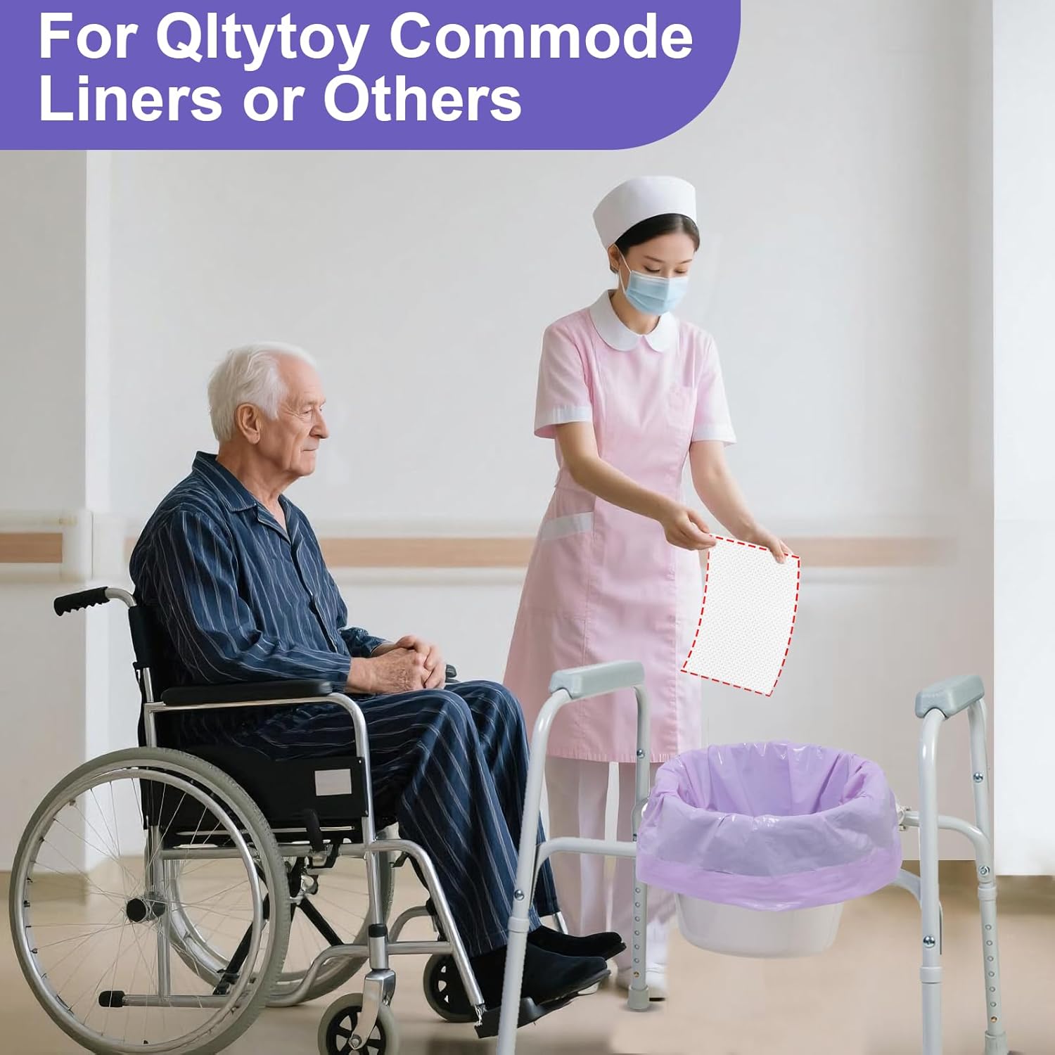• 【Universal Fit for Commode Buckets & Most Potties】Each pack contains 100 count commode liner pads. Commode absorbent pads are universal fit for standard portable commode, adult potty chairs, portable toilet for adults, bedside commodes for seniors, or portable toilet for camping. The size of pads for bedside commode is 9.5*5 in.