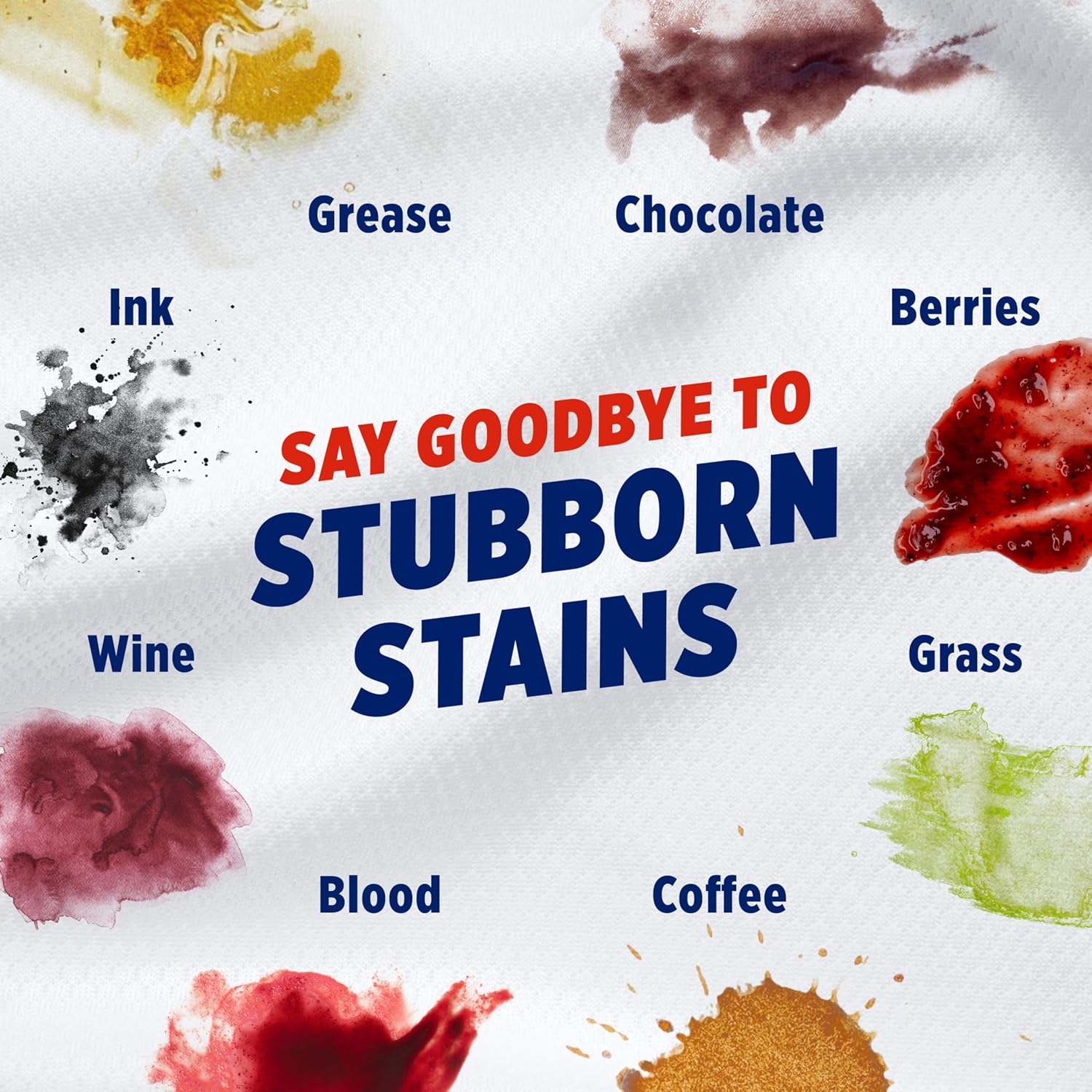 • HELP TACKLE SET-IN STAINS THE FIRST TIME; removes tough stains like oil, grease, coffee, wine, chocolate, ketchup, berries, fruit juice, grass, mud, blood, ink, and washable paint; with no extra pre-wash needed