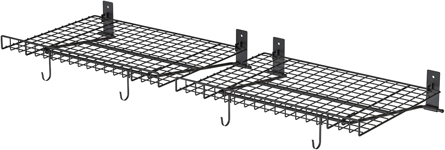 • SPACE-SAVING & FOLDABLE DESIGN: This set of 2 garage wall shelves includes 4 metal hooks, screws, and expansion anchors. Our foldable garage shelves easily collapse against the wall when not in use, freeing up valuable space and providing convenience exactly where you need it. Ideal for small areas, they offer versatile storage solutions without compromising on functionality.