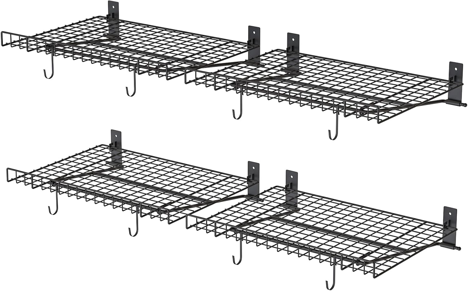• SPACE-SAVING & FOLDABLE DESIGN: This set of 4 garage wall shelves includes 8 metal hooks, screws, and expansion anchors. Our foldable garage shelves easily collapse against the wall when not in use, freeing up valuable space and providing convenience exactly where you need it. Ideal for small areas, they offer versatile storage solutions without compromising on functionality.
