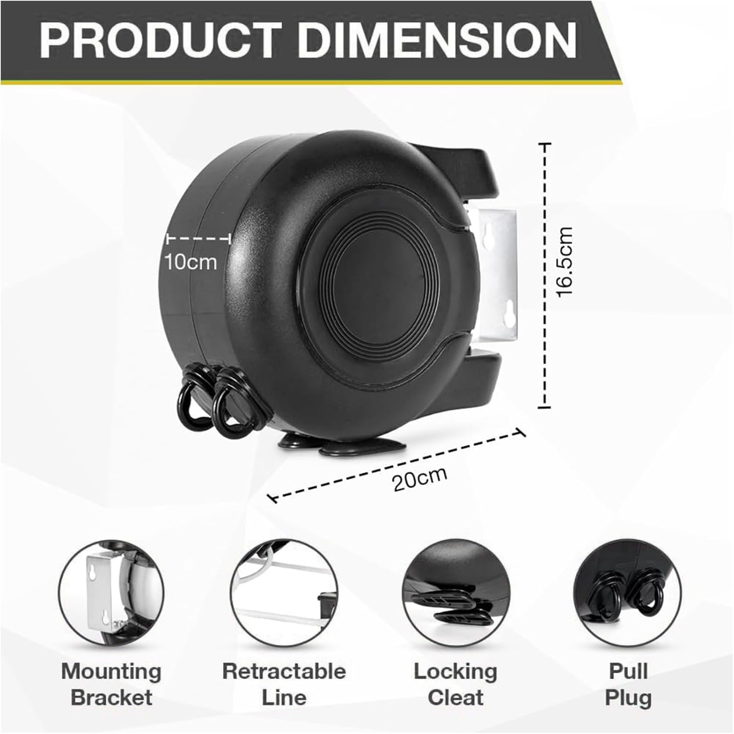 • Smooth Retraction & Easy Locking Mechanism – Pull the line to your desired length and secure it with the simple lock button. When done, release tension gently for smooth, tangle-free retraction. No jamming, no snapping—just easy operation every time.