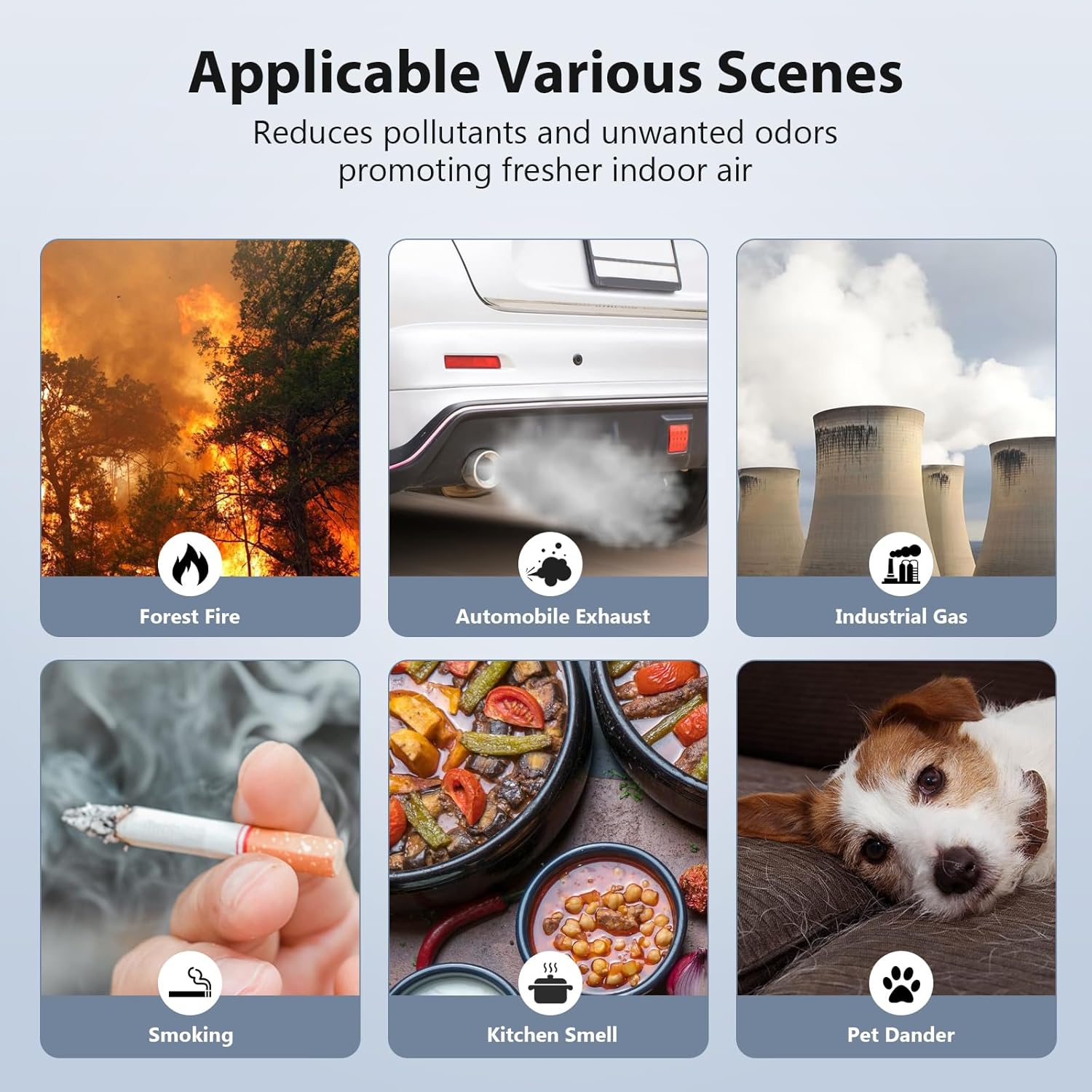 • 4-IN-1 ADVANCED FILTRATION: Mk01 air filter multi-stage defense system combines a nylon pre-filter for large particles, Reaction filter layer can react with harmful particles entering the filter and produce harmless substances, a efficiency filter, and high-density pelletized activated carbon to neutralize odors, VOCs, and formaldehyde—delivering clinic-grade air purity for your home.