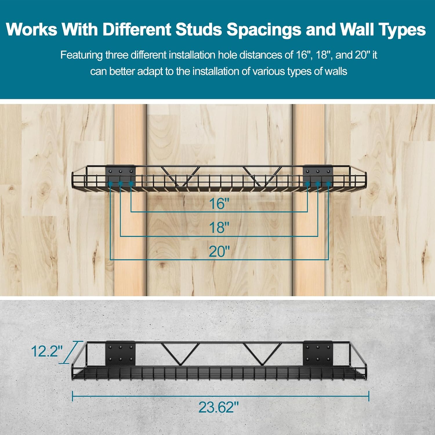 • 4 packs 12inch X 23.8inch heavy-duty wall shelves can help you organize your garage, laundry room, and more with ease.